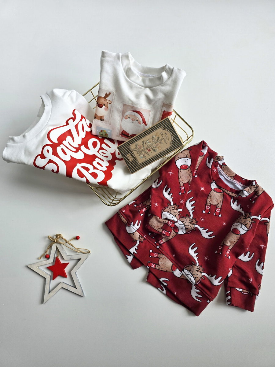 Bluza świąteczna dla dziecka „Reindeer Joy” Świąteczna bluza Reindeer Joy to wyjątkowy element garderoby na czas Bożego Narodzenia. Uroczy nadruk z reniferem i czerwonym noskiem sprawia, że każde dziecko będzie wyglądało radośnie i stylowo podczas rodzinnych spotkań czy świątecznych sesji zdjęciowych. Bluza została uszyta w naszej pracowni z wysokiej jakości dzianiny (92% bawełna, 8% elastan), która jest miękka, elastyczna i wygodna w noszeniu. Dzięki certyfikatowi Oeko-Tex Standard 100 masz pewność, że materiał jest bezpieczny nawet dla wrażliwej skóry dziecka. Dlaczego warto?