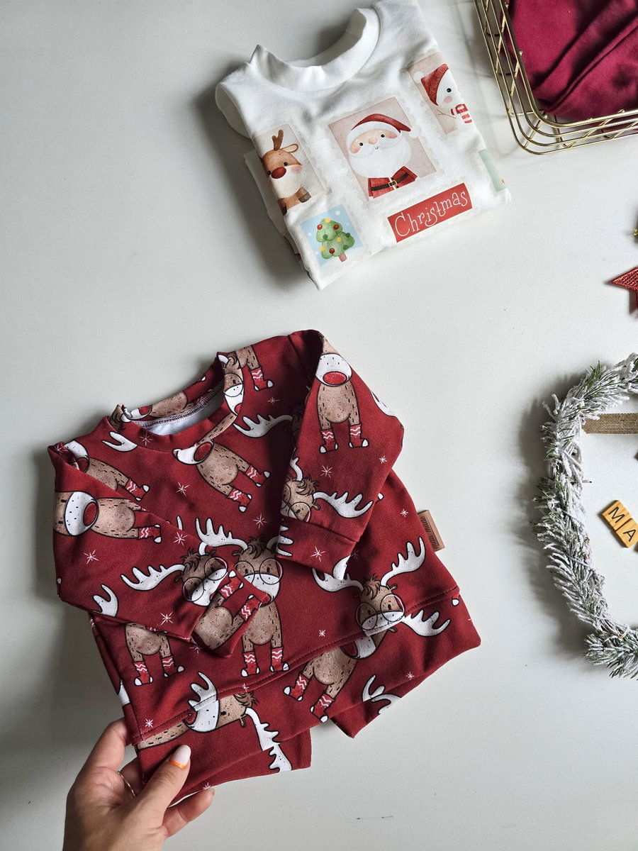 Bluza świąteczna dla dziecka „Reindeer Joy” Świąteczna bluza Reindeer Joy to wyjątkowy element garderoby na czas Bożego Narodzenia. Uroczy nadruk z reniferem i czerwonym noskiem sprawia, że każde dziecko będzie wyglądało radośnie i stylowo podczas rodzinnych spotkań czy świątecznych sesji zdjęciowych. Bluza została uszyta w naszej pracowni z wysokiej jakości dzianiny (92% bawełna, 8% elastan), która jest miękka, elastyczna i wygodna w noszeniu. Dzięki certyfikatowi Oeko-Tex Standard 100 masz pewność, że materiał jest bezpieczny nawet dla wrażliwej skóry dziecka. Dlaczego warto?