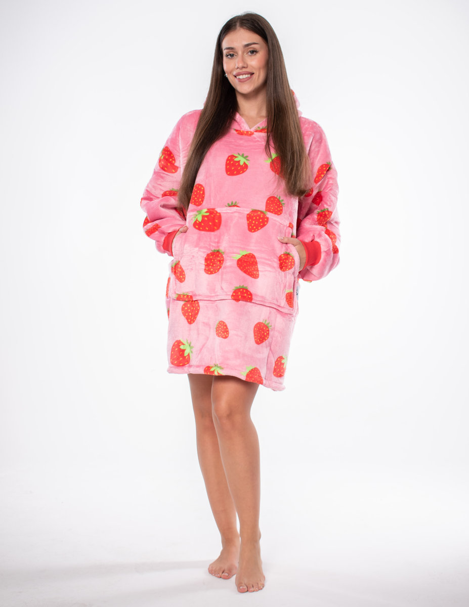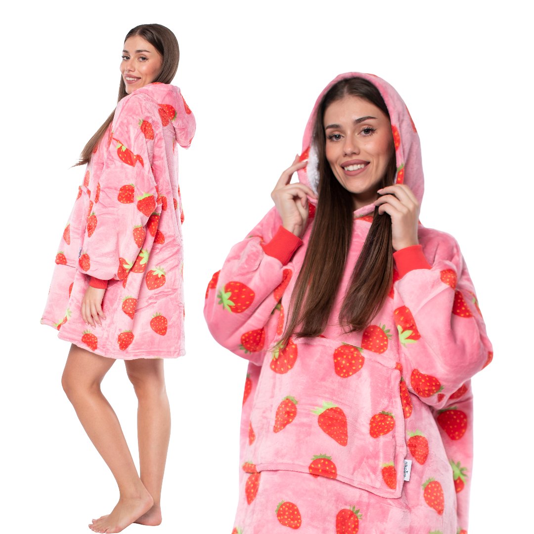 Bluza Koc Kocobluza 2w1 Oversize Kaptur Gruba Sherpa Różowa w TruskawkiOpis produktu:Kocobluza 2w1 w to idealne połączenie wygody, ciepła i stylu, które sprawdzi się w chłodne jesienne i zimowe dni. ...