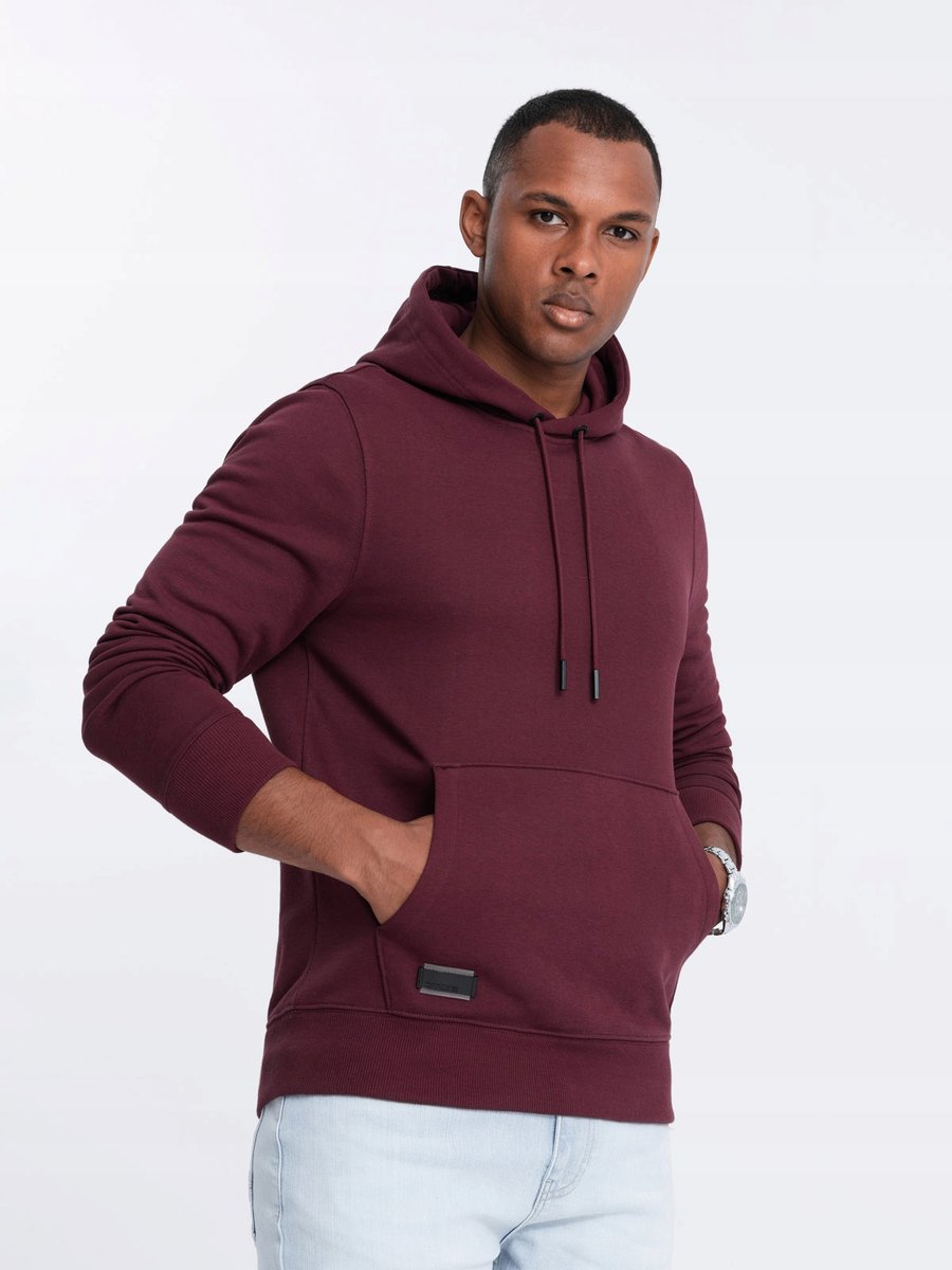 Bawełniana męska dresowa bluza kangurka z kapturem BASIC – bordowa V3 OM-SSBN-0161 L