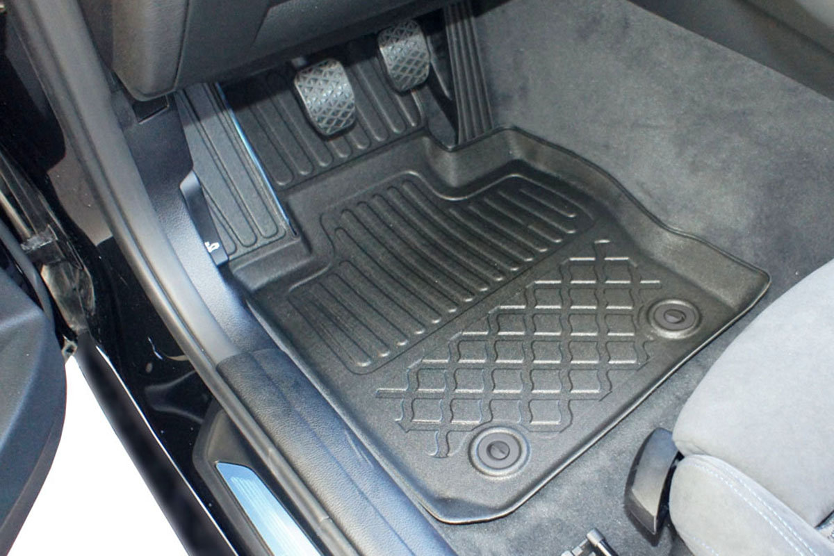 Oferowane dywaniki zostały precyzyjnie zaprojektowane do kształtu płyty podłogowej biorąc pod uwagę nie tylko markę / model samochodu, ale także rocznik oraz wersję nadwozia, dzięki czemu pasują idealnie. Dywaniki wytwarzane są z najwyższej jakości, trwałego i wzmocnionego tworzywa sztucznego, niezawierającego substancji szkodliwych dla zdrowia, co zapewnia bezpieczeństwo użytkowania. Wysoki kołnierz (brzeg) ochronny dookoła dywaników oraz stabilność kształtu skutecznie zatrzymuje wodę i brud, zabezpieczając oryginalną tapicerkę samochodową przed zabrudzeniem. Bezpieczne w użytkowaniu, dzięki praktycznemu i łatwemu w użyciu systemowi mocowania do podłogi samochodu. System mocowania dostosowany jest do marki / modelu samochodu i zabezpiecza dywanik przed przesuwaniem podczas jazdy. Matowe wykończenie oraz dopracowany wzór na powierzchni zapewniają estetyczny wygląd dywaników w samochodzie.
