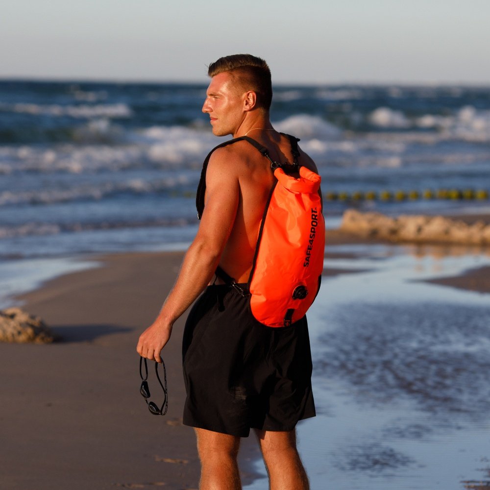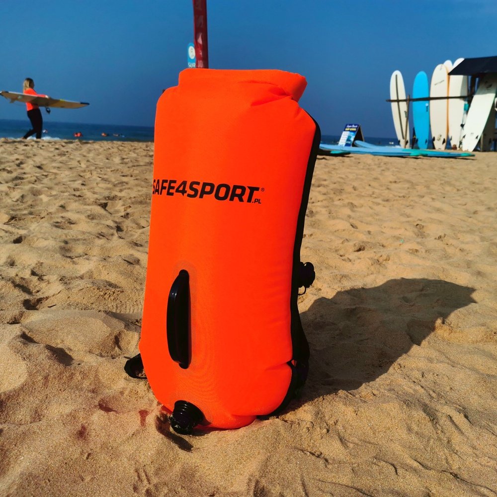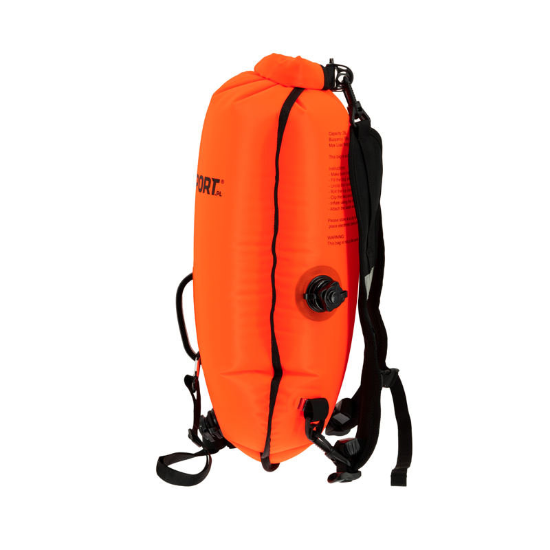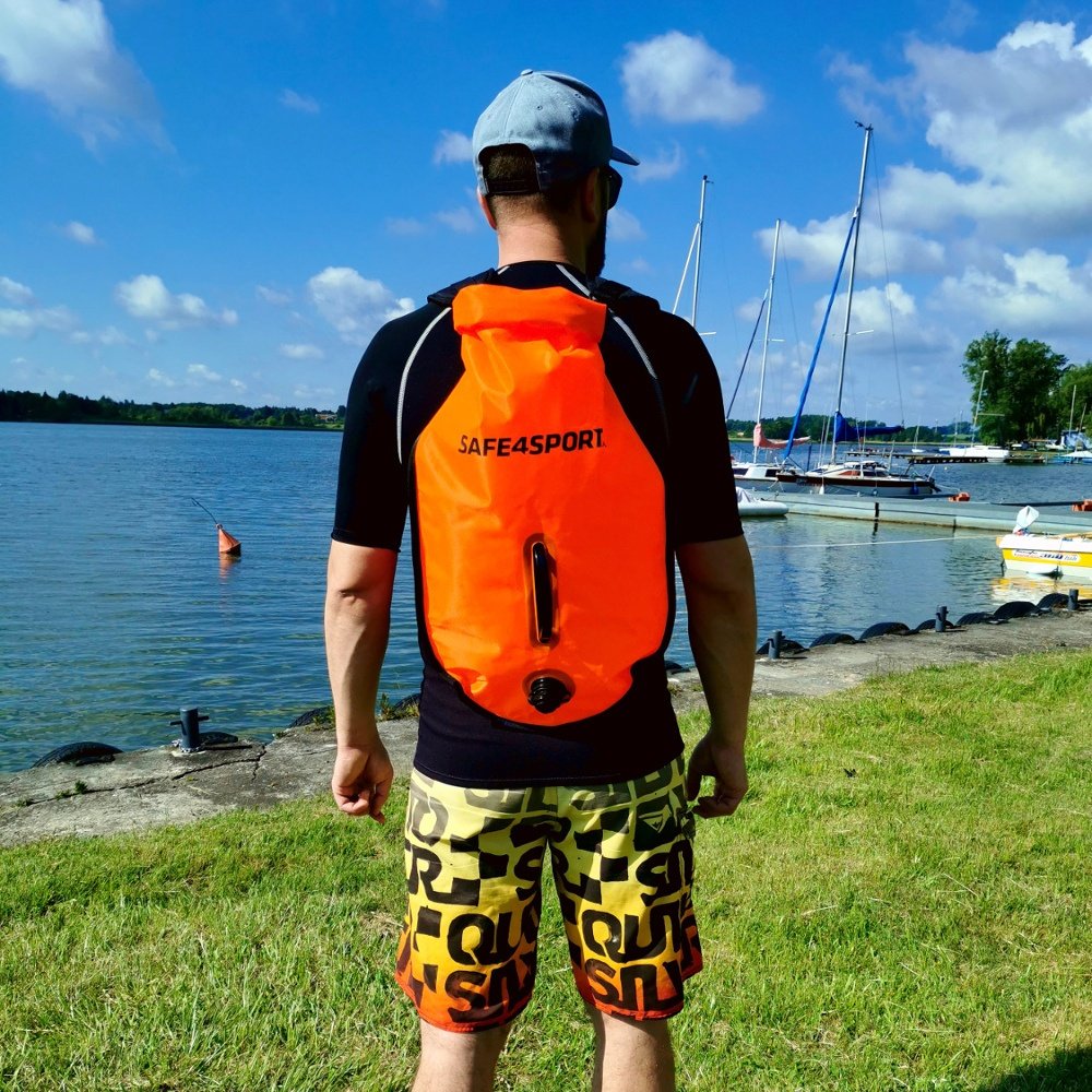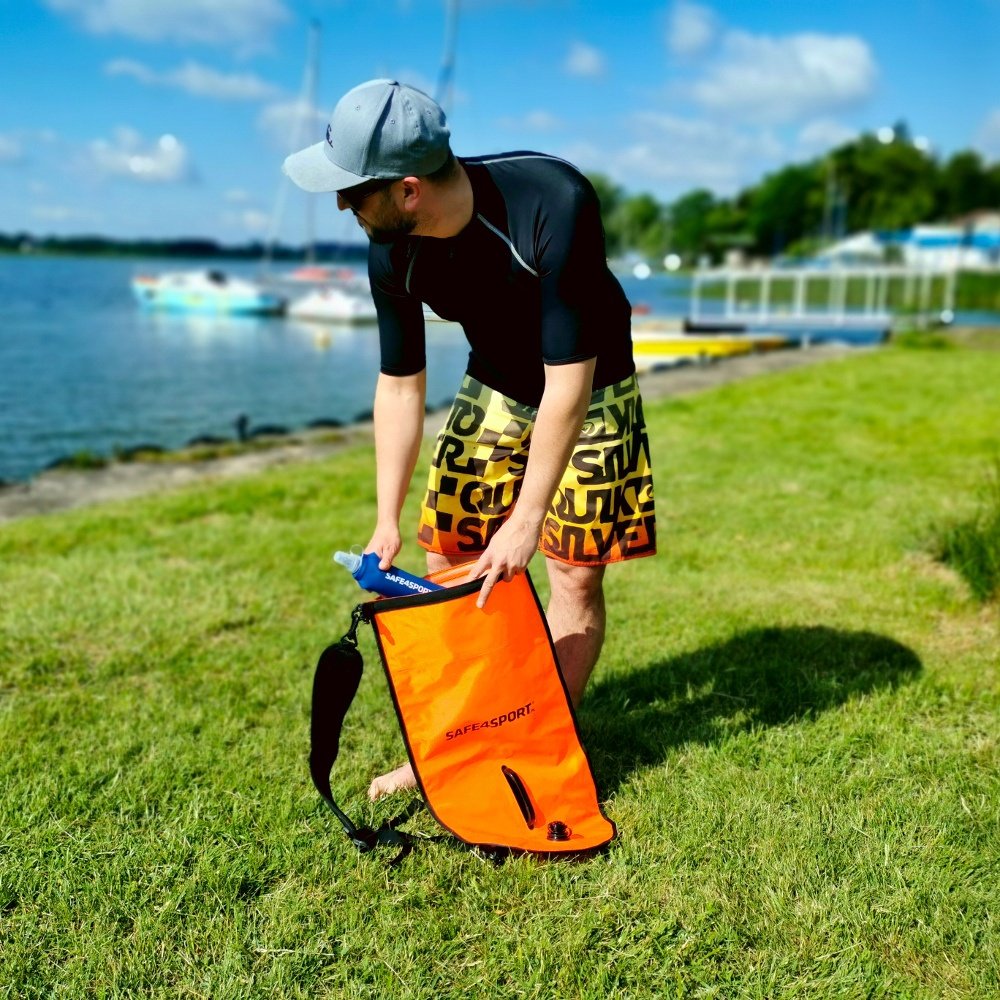 Bojka asekuracyjna RunSwimmer 2.0 jest niezwykłym połączeniem dmuchanej boi do pływania i wodoszczelnego plecaka. Dzięki specjalnie zaprojektowanym uchwytom do bojki przypinamy wygodne szelki i możemy założyć ją na siebie jak plecak. Dzięki temu rozwiązaniu bez problemu przemieścimy się z bojką nad jezioro, a trenowanie stanie się jeszcze wygodniejsze. Odpinane szelki wyposażone są w wygodne karabińczyki dzięki którym w kilka sekund przemienisz swoją bojkę w wygodny plecak. To idealne rozwiązanie dla każdego kto chciałby połączyć pływanie z bieganiem, jazdą na rowerze czy spacerem.