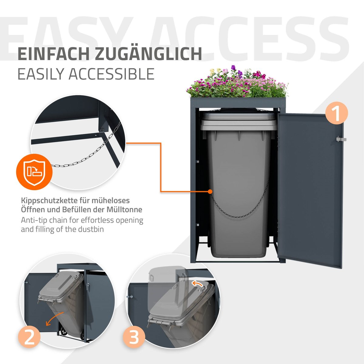 Przechowuj kosz na śmieci poza zasięgiem wzroku w ogrodzie i utrzymuj porządek i estetykę na zewnątrz dzięki naszemu pojemnikowi na śmieci!