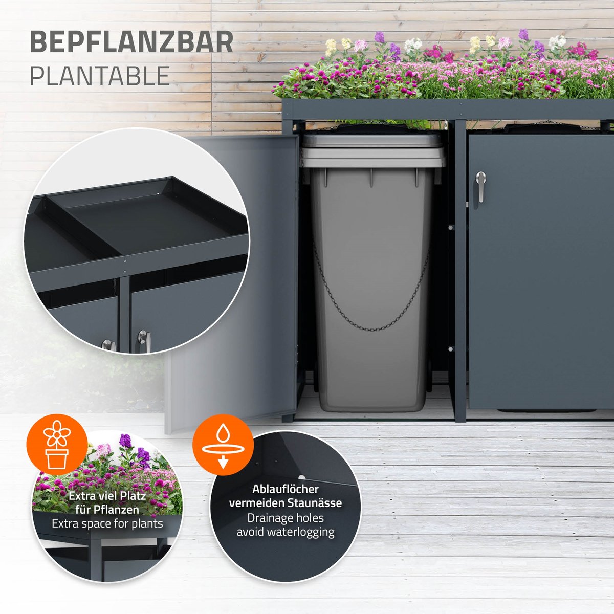 Właśnie zrecenzowałem Boks na 3 pojemniki na odpady Domek na pojemniki na odpady Obudowa pojemnika na odpady z daszkiem do sadzenia