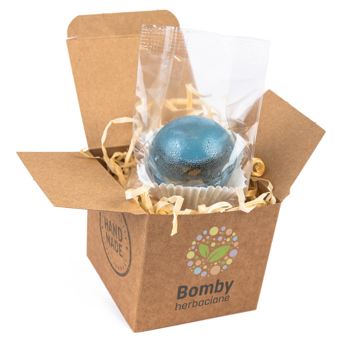 Bomby pakowane są w eleganckie pudełko o wymiarach 7x7x7 cm, zabezpieczone wypełniaczem.