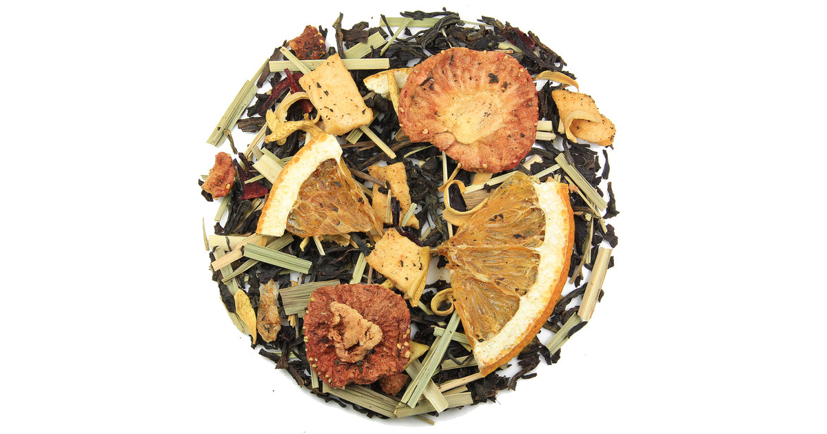 • Skład mieszanki herbacianej: Herbata czarna Yunnan, trawa cytrynowa, jabłko suszone, pomarańcza suszona 7%, truskawka liofilizowana, hibiskus, kwiat pomarańczy 3%, aromat