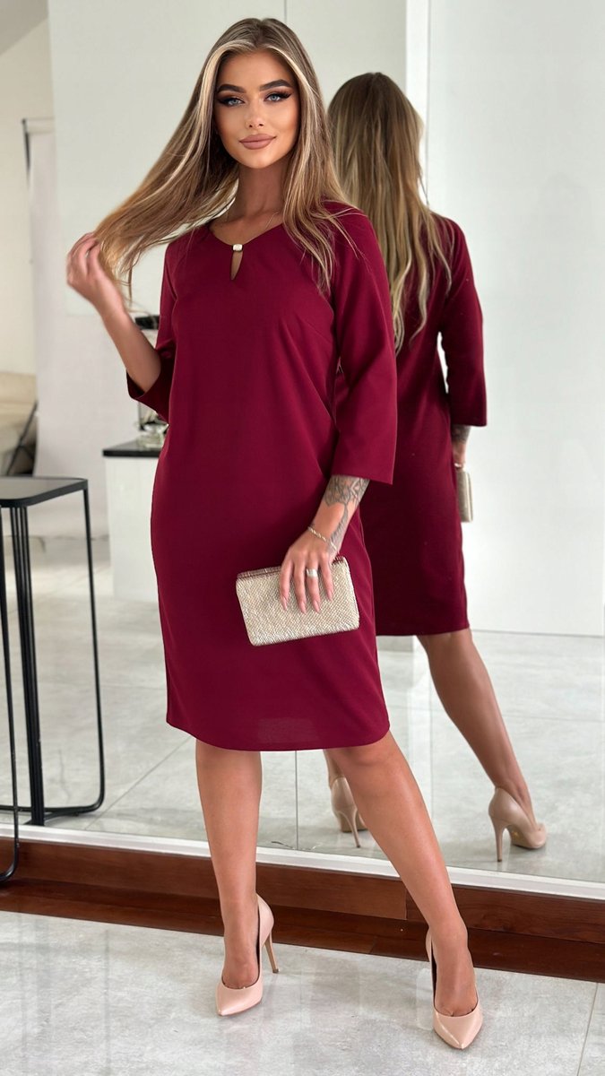 Właśnie zrecenzowałem Bordowa Elegancka Prosta Sukienka Rozmiar 40 Polski Producent