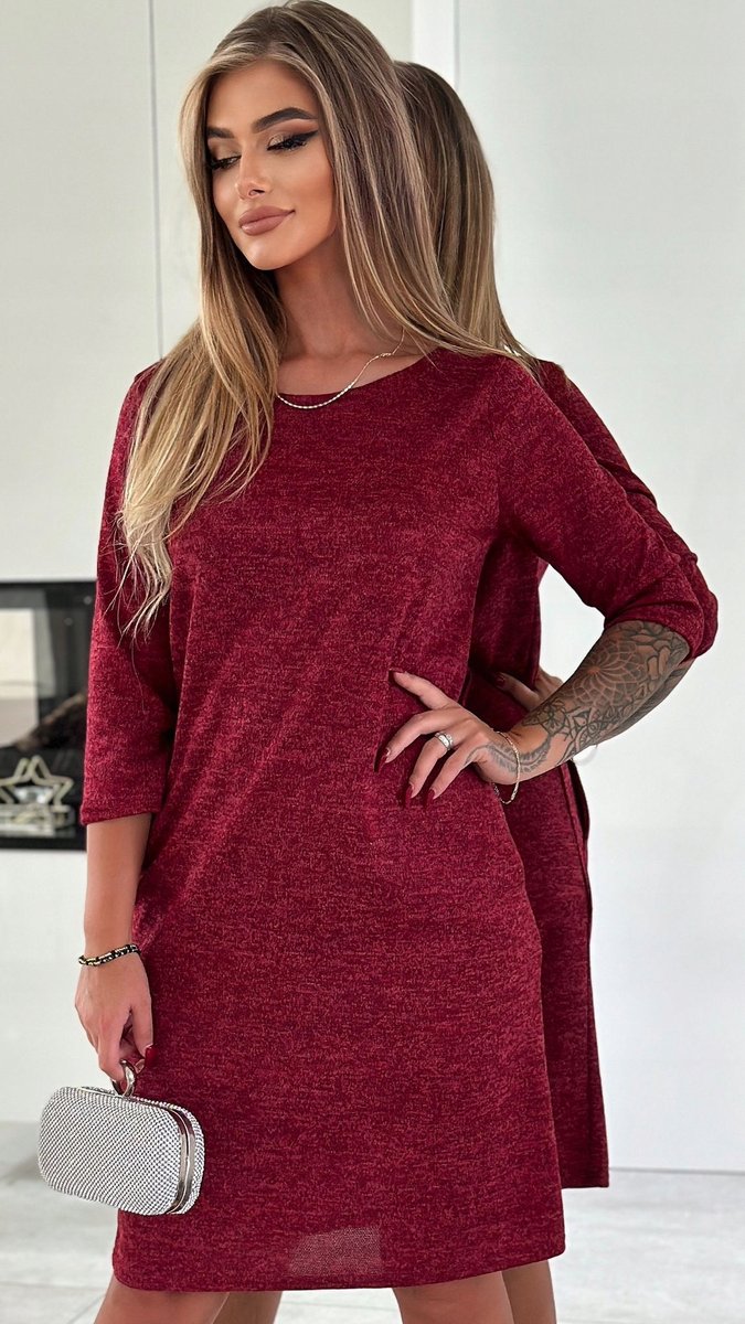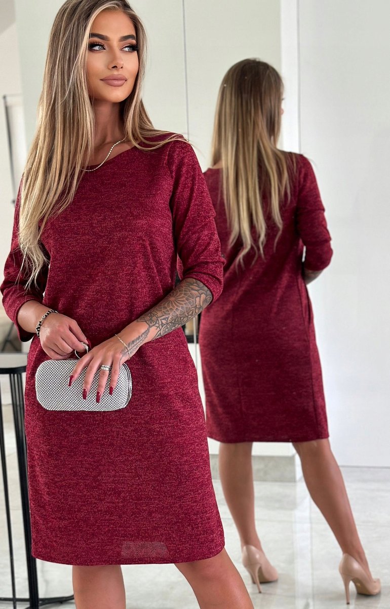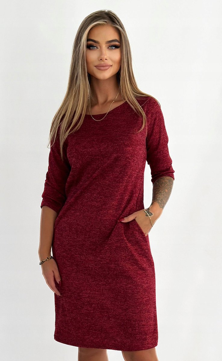 Właśnie zrecenzowałem Bordowa Sweterkowa Sukienka z Kieszeniami Rozmiar 38