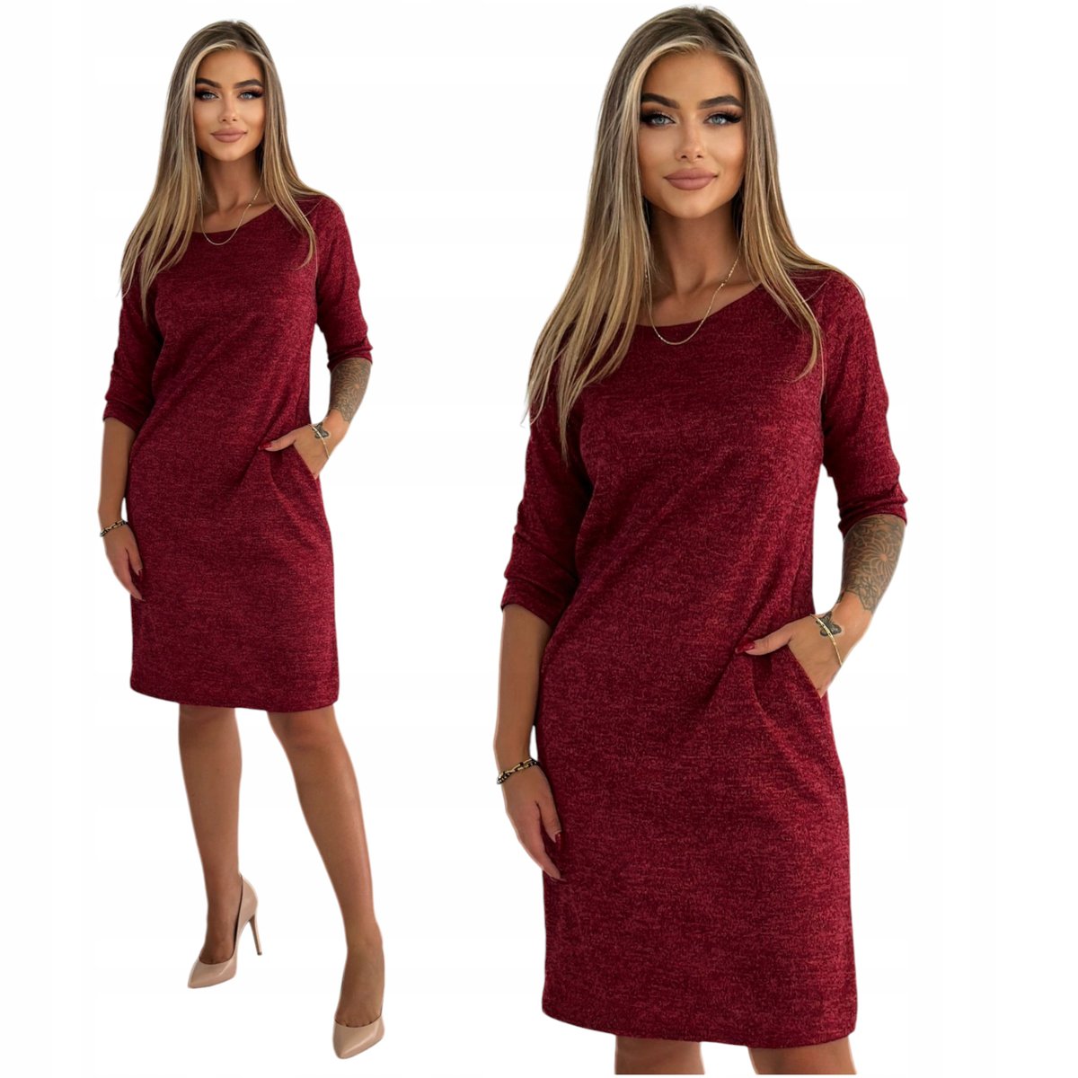 BORDOWA SWETERKOWA SUKIENKA Z KIESZENIAMI