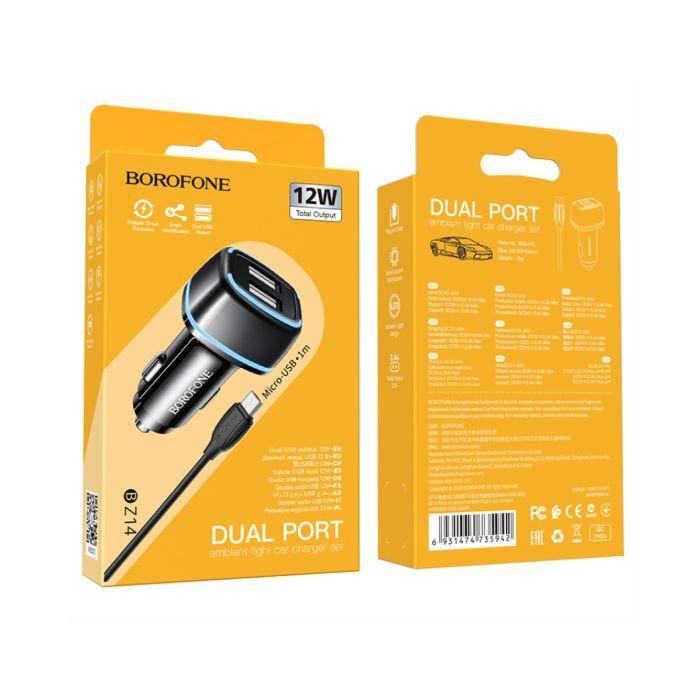Właśnie zrecenzowałem BOROFONE Ładowarka samochodowa - BZ14 2.4A 2xUSB + kabel Micro USB 1m