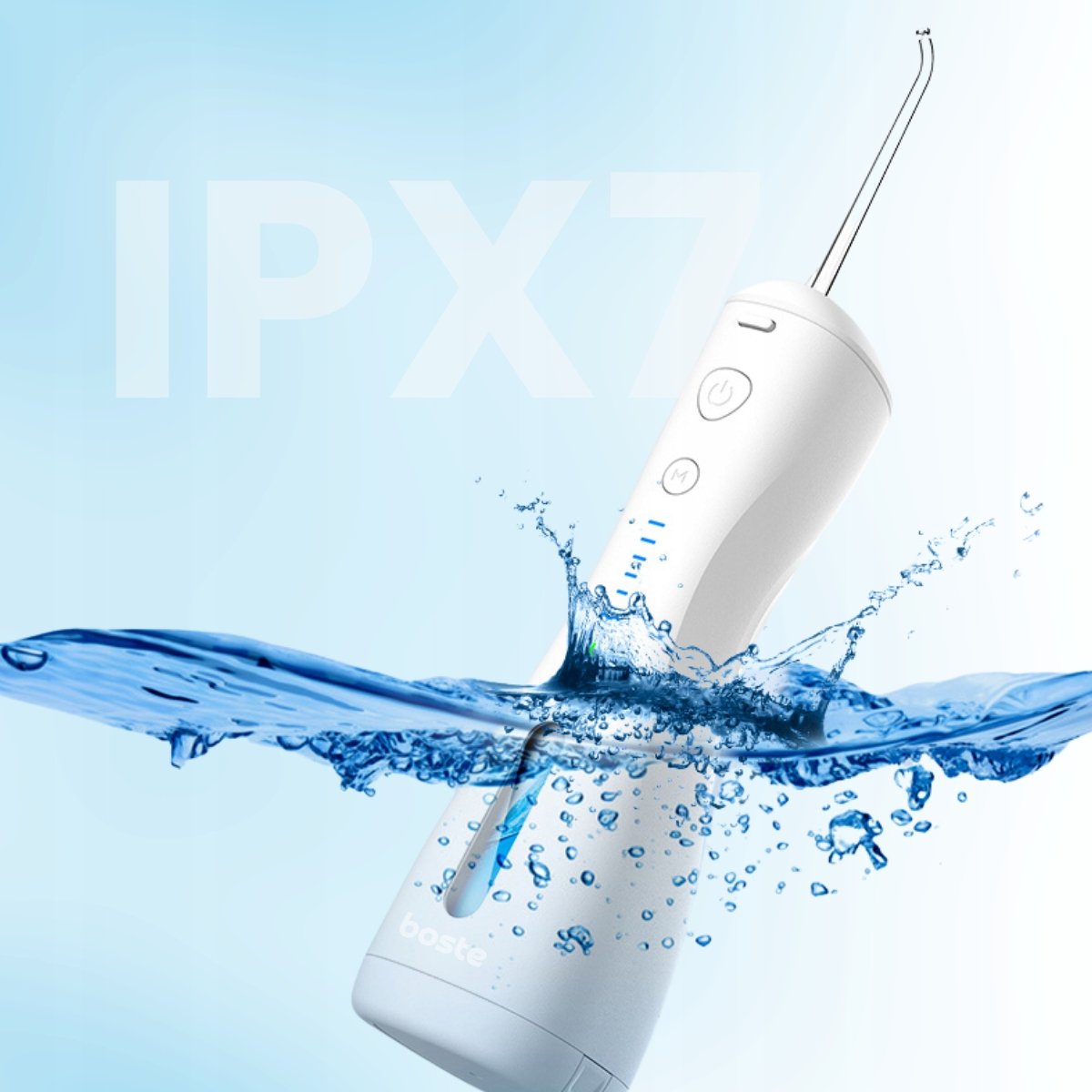 Pełna ochrona przed wilgocią pozwala na korzystanie z irygatora nawet pod prysznicem. Konstrukcja spełniająca normę IPX7 oznacza odporność na zachlapania i przypadkowe zanurzenie – idealna do codziennej łazienkowej rutyny.