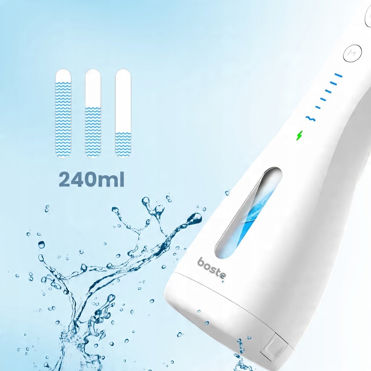 Nowoczesny irygator z 6 trybami pracy, który skutecznie wypłukuje resztki jedzenia i zanieczyszczenia z przestrzeni międzyzębowych oraz spod linii dziąseł. Dzięki technologii pulsacyjnej (1600 pulsów/min) i ciśnieniu do 140 PSI wspiera walkę z osadami i dba o świeży oddech. Obrotowa dysza 360°, zbiornik 240 ml i pełna wodoodporność IPX7 zapewniają wygodę i skuteczność każdego dnia — nawet pod prysznicem. Idealny dla osób z aparatami, implantami i wrażliwymi dziąsłami.