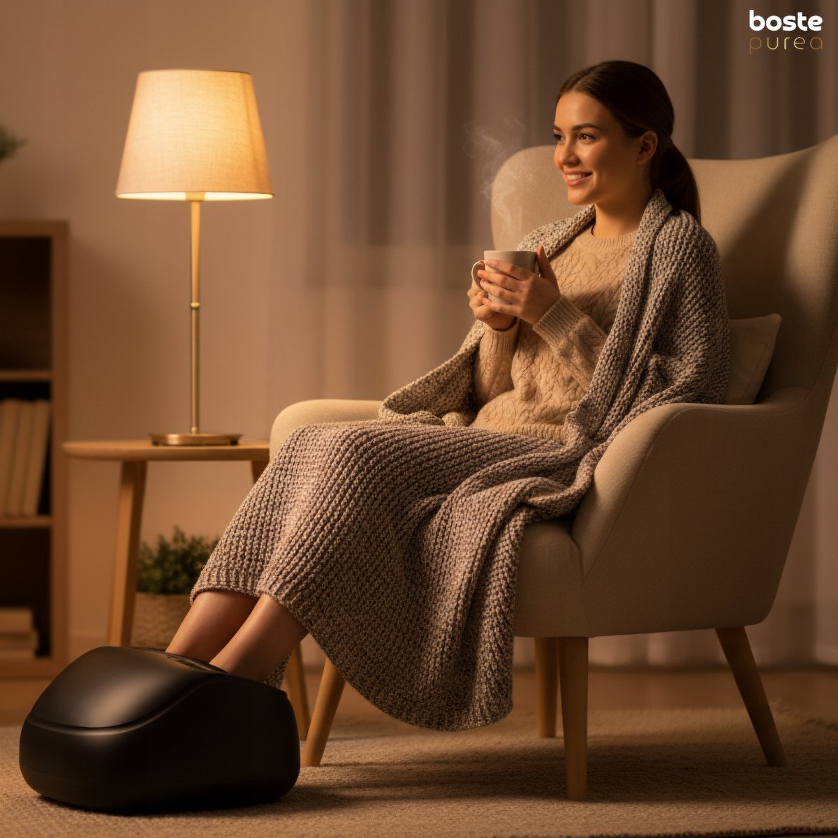 Zapomnij o zmęczeniu po długim dniu. Masażer stóp Boste Purea Bootsy wykorzystuje system VibroHeat 3D, łączący trzy techniki: