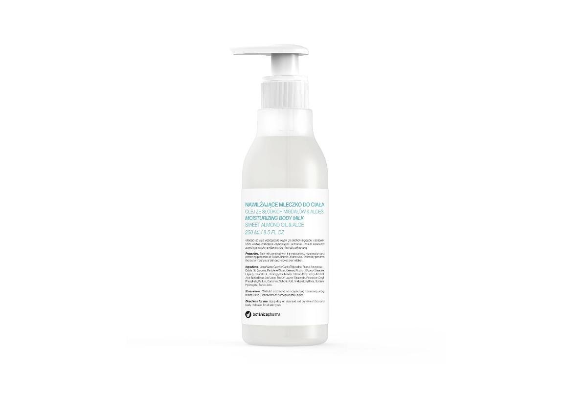 Botanicapharma nawilżające mleczko do ciała olej ze słodkich migdałów & aloes, 250 ml to naturalny kosmetyk zapewniając skórze optymalny poziom nawodnienia oraz odżywienie. Wzmacnia