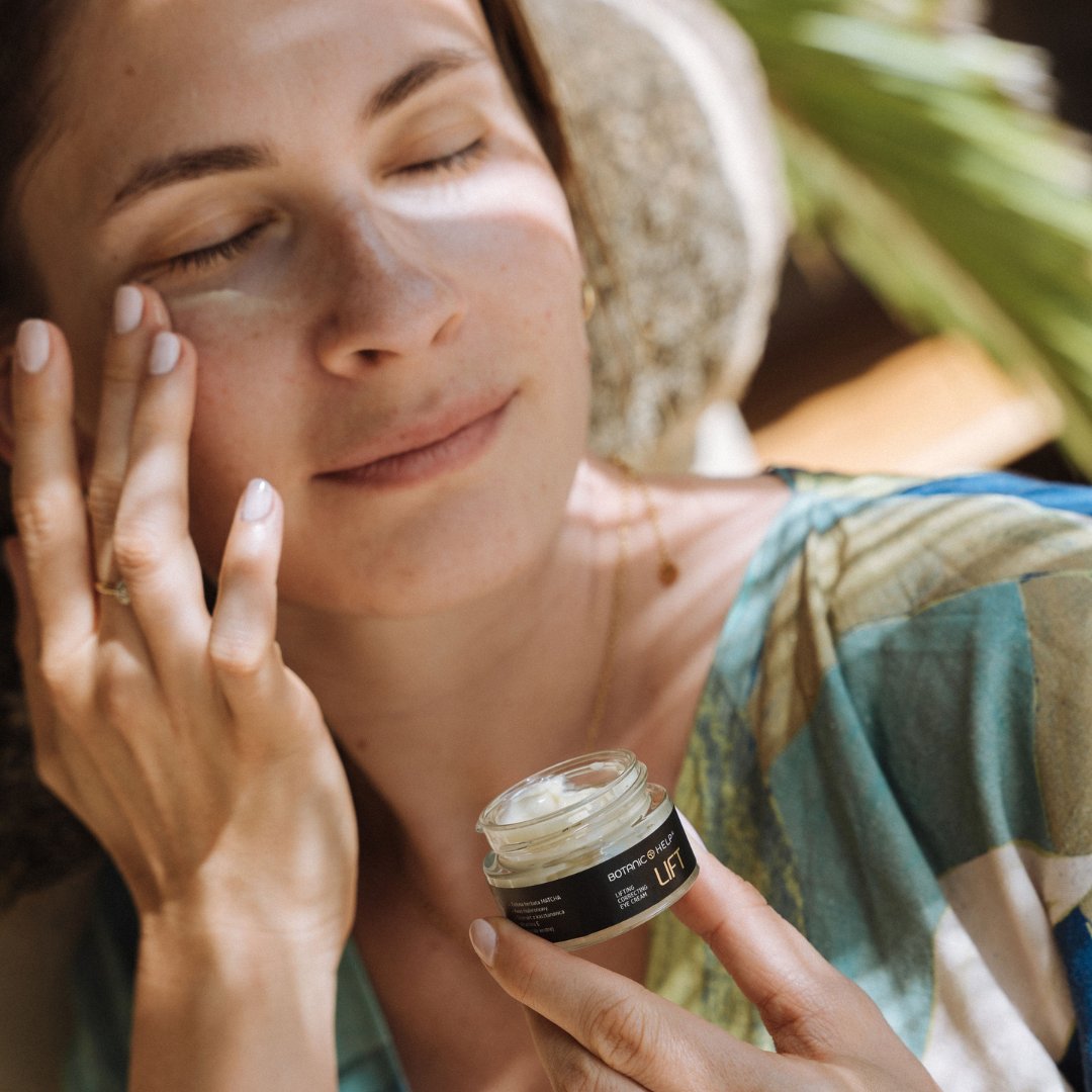 Najlepsze efekty osiągniesz, delikatnie wklepując krem opuszkami palców.
