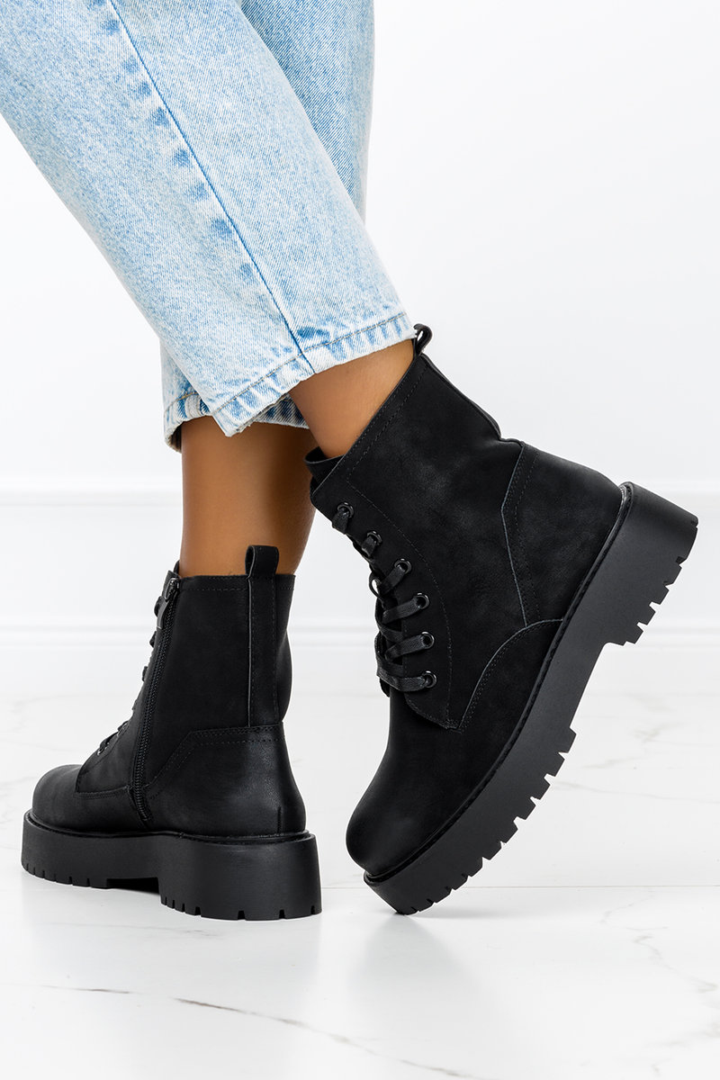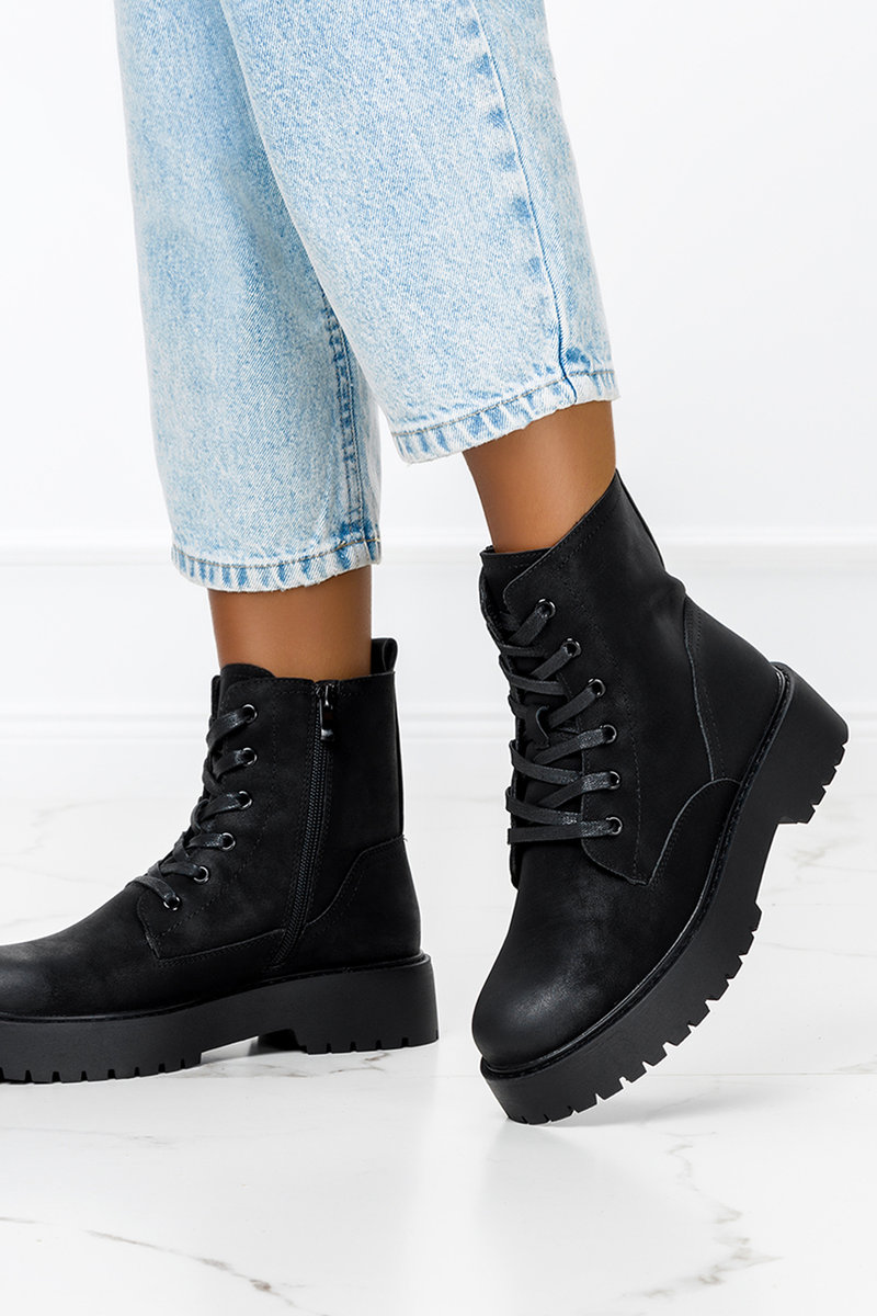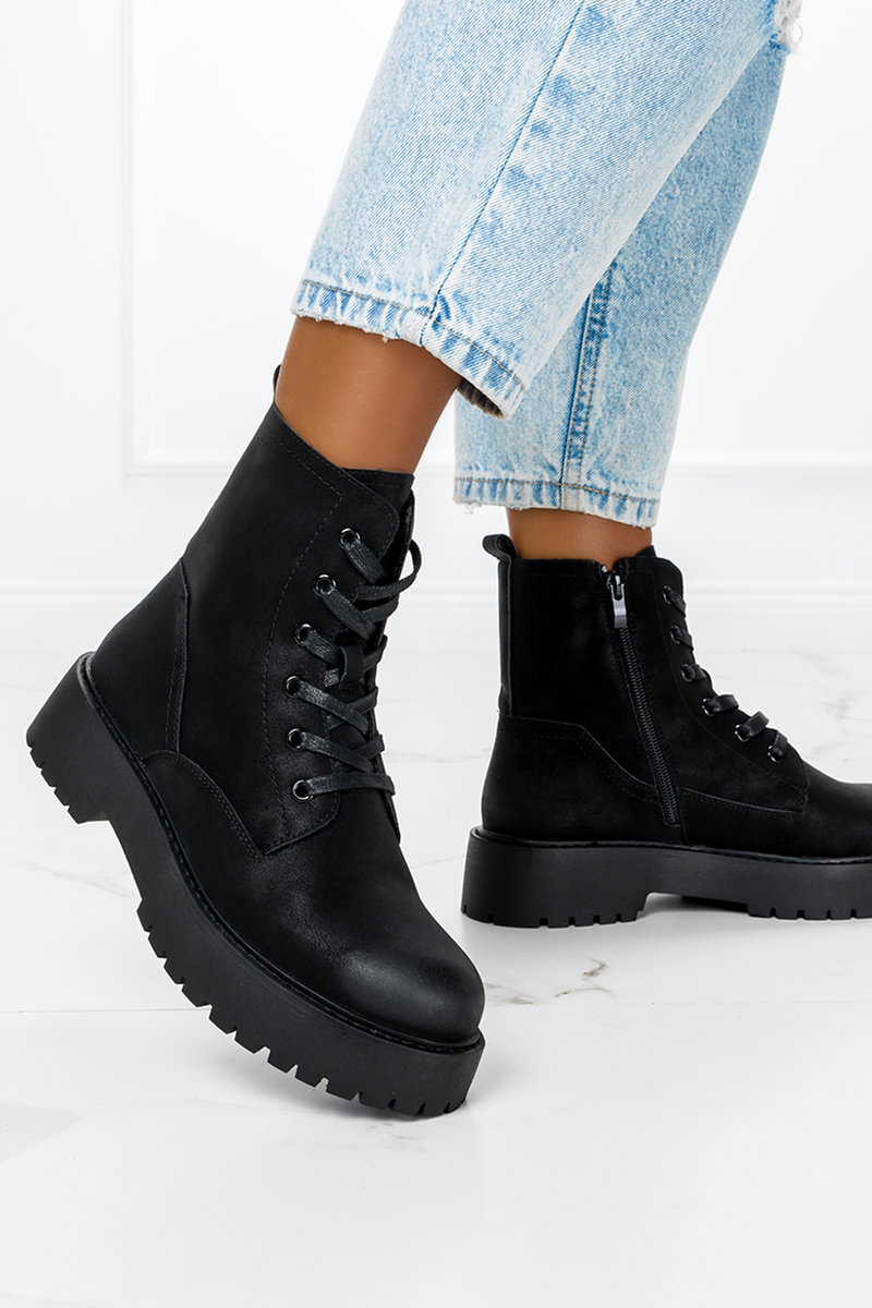 Botki Sergio Leone workery na platformie sznurowane czarne TR759