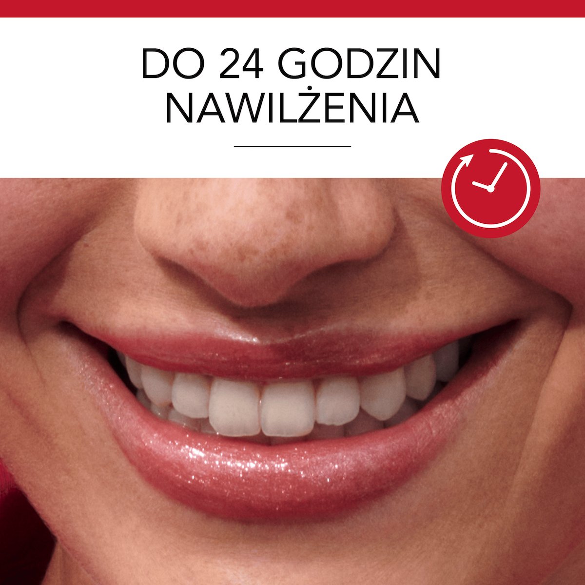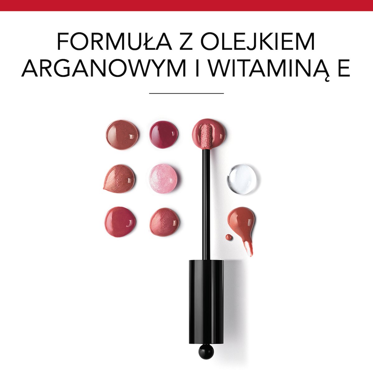 - Niesamowicie kremowa formuła nawilżającego błyszczyka do ust wzbogacona została olejkiem arganowym i witaminą E