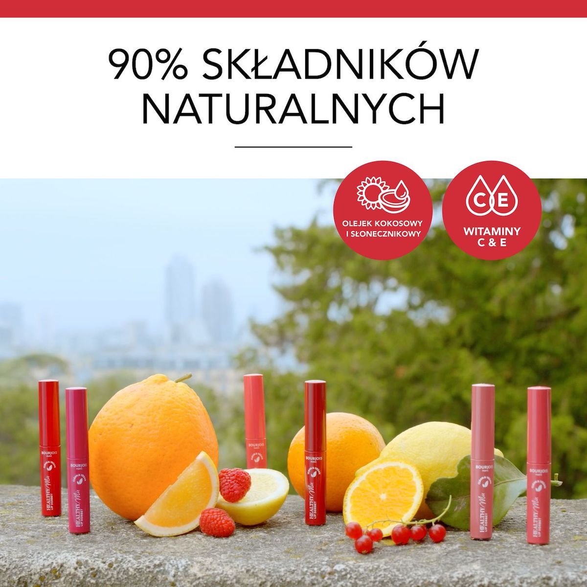 Daj się oczarować soczystym pomadkom Healthy Mix Clean Lip Sorbet od marki Bourjois! Ich odżywcza formuła w cudownie sorbetowych odcieniach nadaje ustom zdrowego wyglądu i zapewnia im nawilżenie przez cały dzień. Niesamowita konsystencja pomadki sprawia, że rozpływa się ona na ustach, pozwalając uzyskać błyszczące wykończenie. Dzięki możliwości stopniowalnego budowania krycia pozwala uzyskać dostosowaną do indywidualnych potrzeb intensywność koloru z lśniącym wykończeniem.
