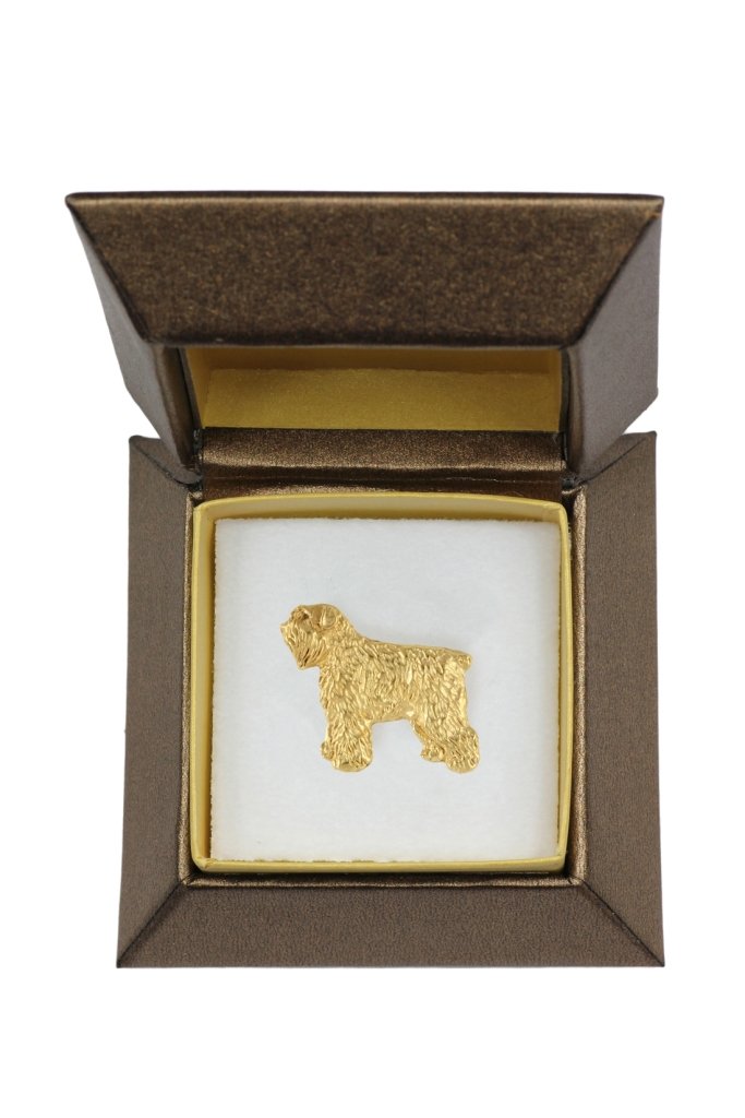 Bouvier, Bouvier des Flandres - broszka z psem w pudełku ozdobnym, elegancki pozłacany pin, przypinka do marynarki marki Art-Dog