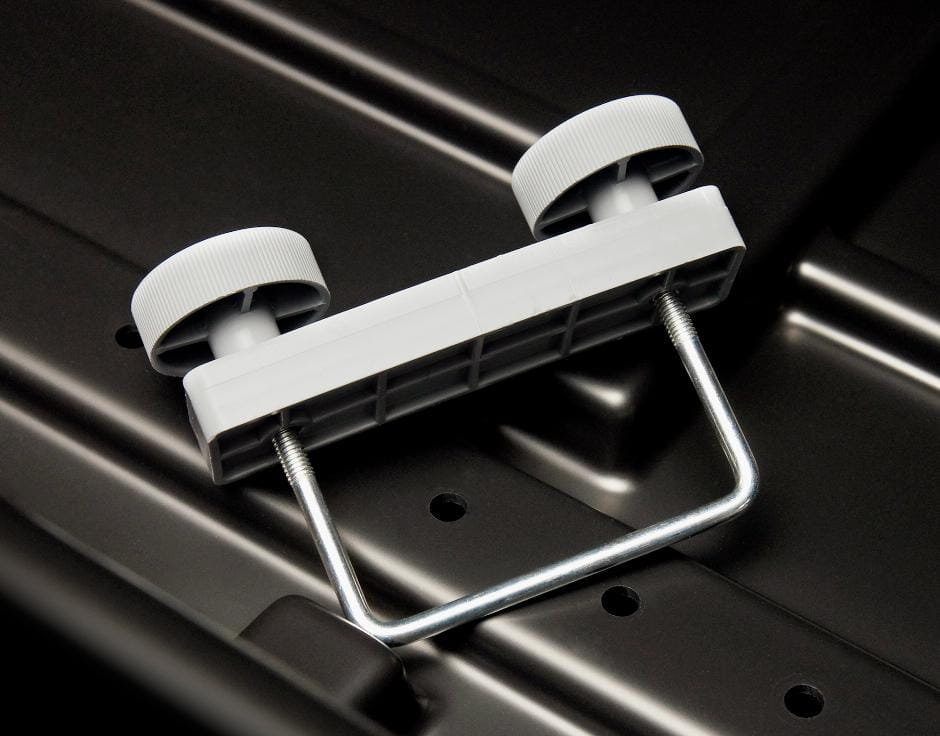 Bagażnik dachowy montowany jest do belek dachowych za pomocą cybantów w kształcie litery „U”. Dzięki systemowi box można zamontować na belkach o szerokości do 80 mm i wysokości od 18 mm do 36 mm oraz rozstawie od min 41 cm do max 98 cm.