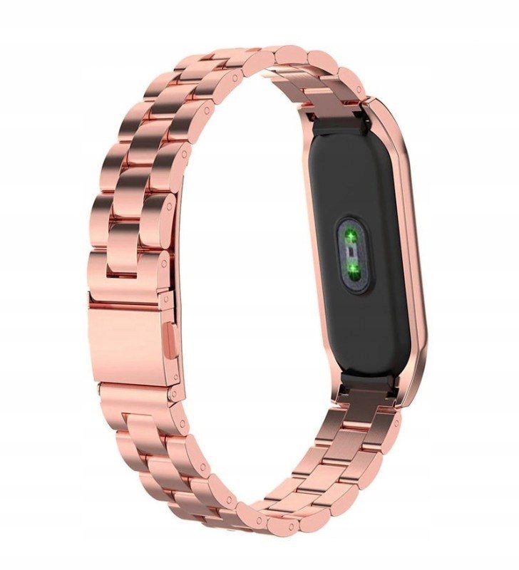 Bransoletka mesh do zegarka smartband wraz z zintegrowana kopertą, wykonana z stali szlachetnej posiadająca podwojną blokadę zapięcia.