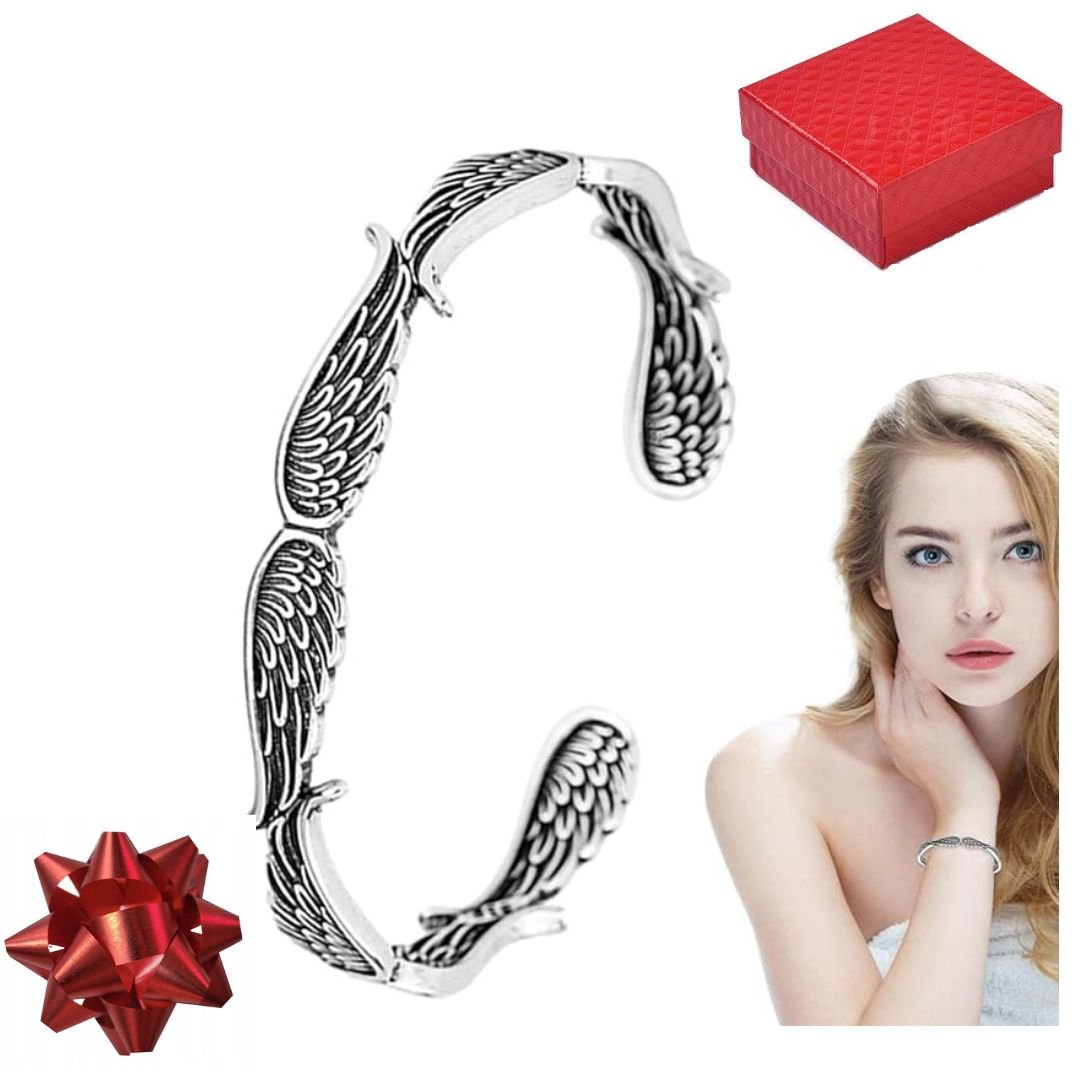 Bransoletka srebrna 925 z motywem Skrzydeł Aniołapiękny wspaniały wyrób o średnicy 6 x 5,5 cmobwód 18 cm z możliwością lekkiej regulacjiszerokość 7 mmzapakowany komplet w piękne pudełko - od razu na ...