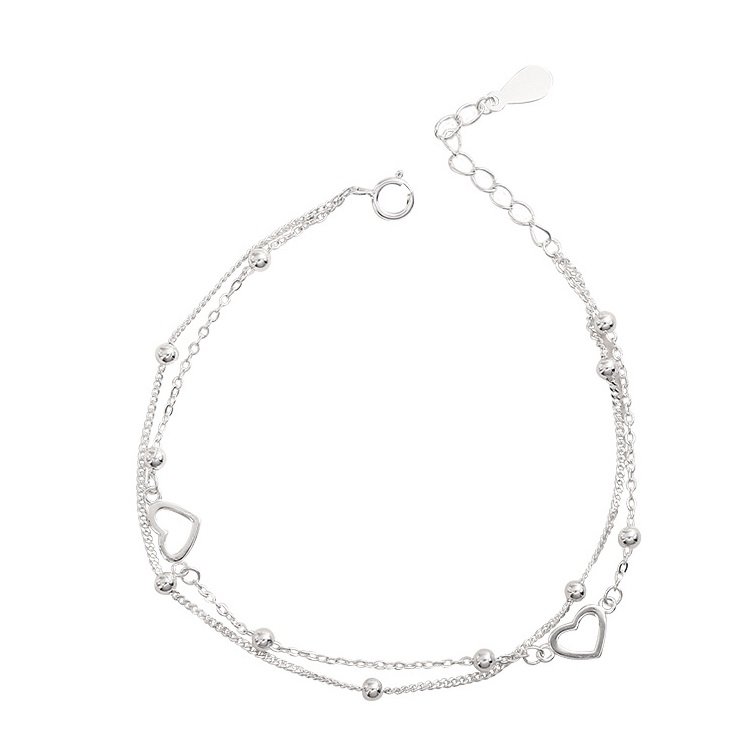 Bransoletka podwójna (posrebrzana miedź) Motyw: serce, kulki Materiał: posrebrzana miedź Długość całkowita: 32 cm Regulacja długości: od 13 cm do 32 cm Wysokość zawieszki: 8 mm Szerokość zawieszki: ...