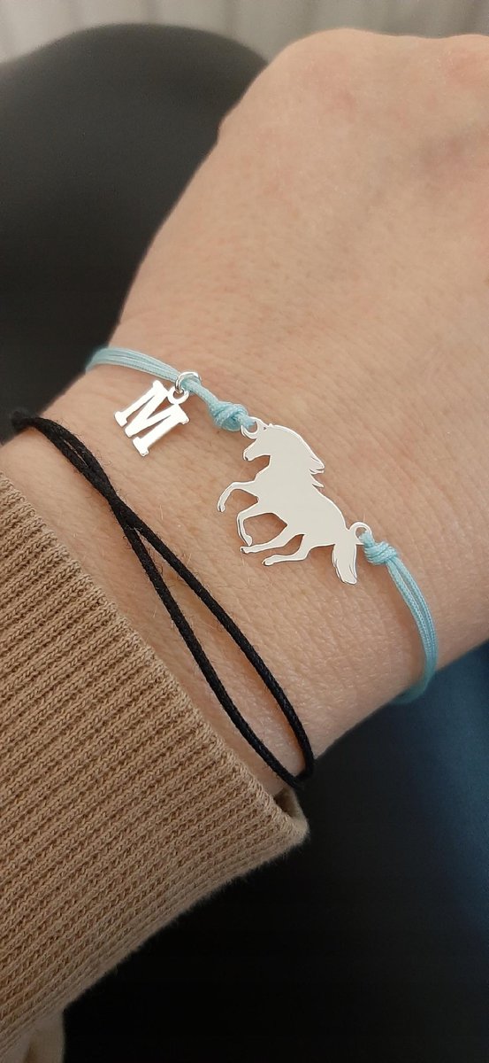 Bransoletka sznurkowa konik koń i dowolna literka Bransoletka z konikiem i literkąDługość bransoletki: ok 17 cm + regulacja (możemy wykonać dowolną długość)Średnica sznureczka - 2