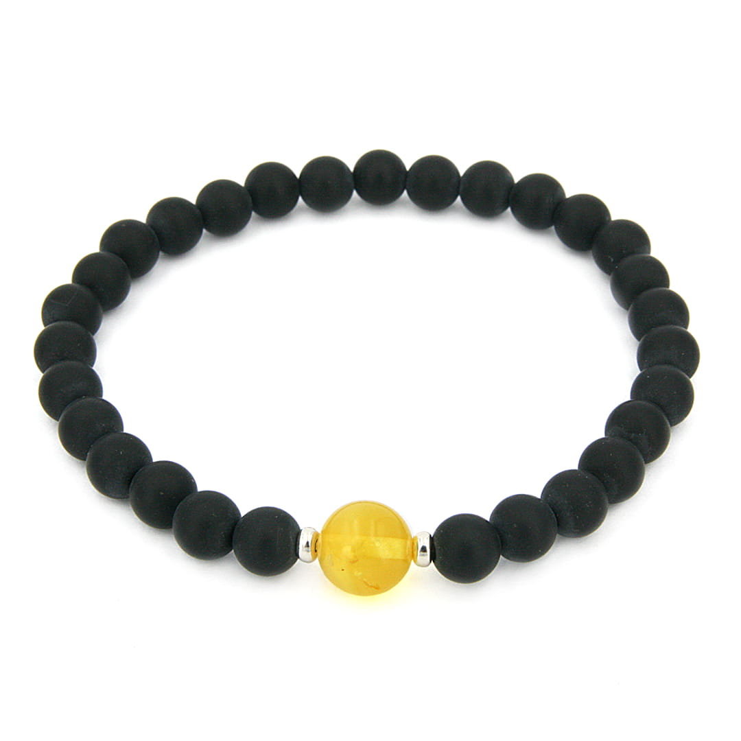 | Nazwa: | Bransoletka z kulką bursztynową i czarnym matowym onyksem 8695 |