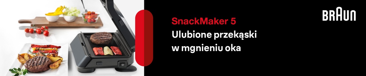Braun SnackMaker 5 SM5001 Gorące i pachnące tosty czy kanapki na ciepło to pyszna, szybka i pełnowartościowa propozycja na śniadanie, lunch, kolację czy przekąskę w ciągu dnia. Z pomocą w ...