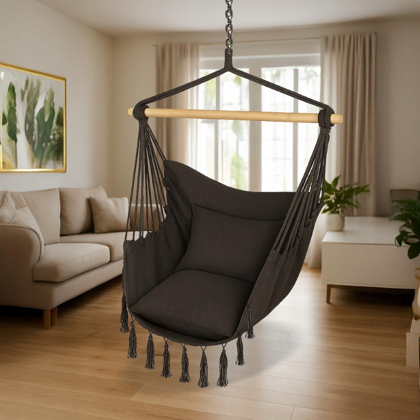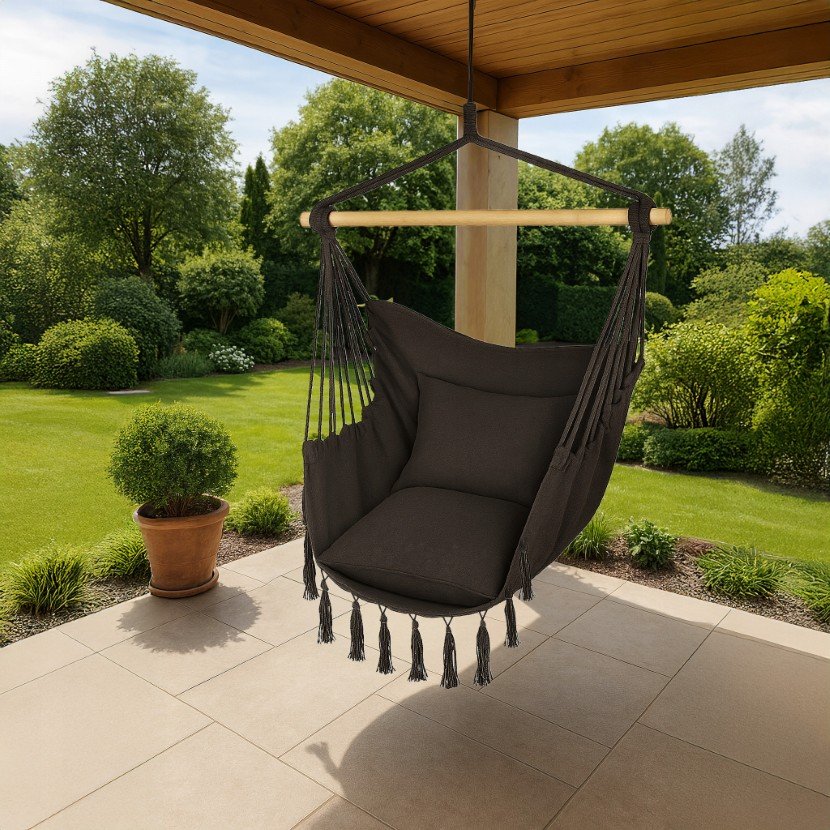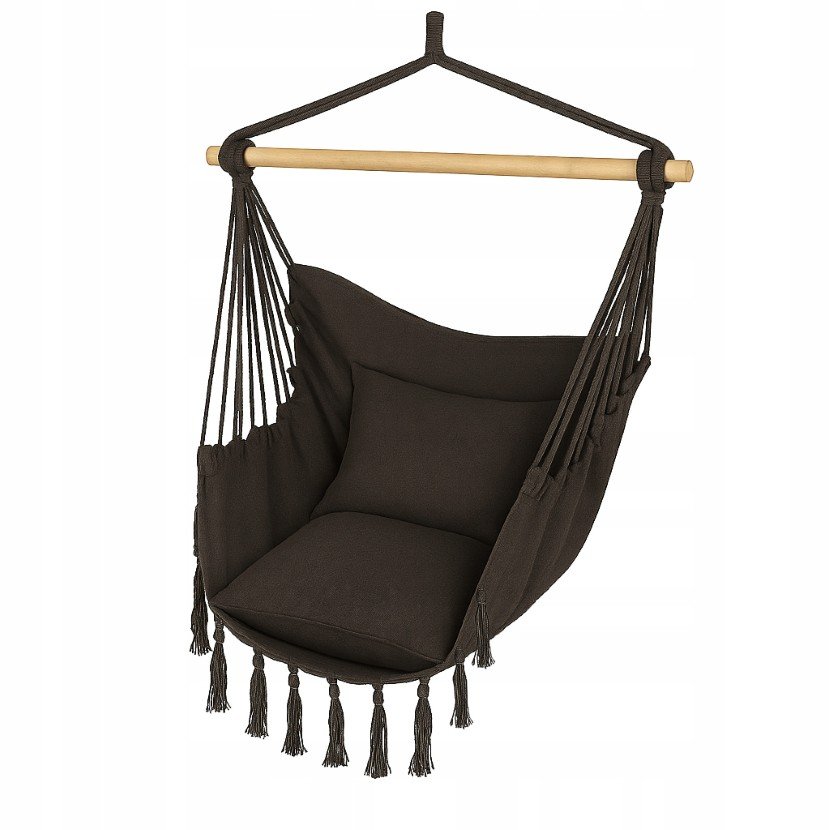Elegancki i funkcjonalny fotel wiszący, idealny do użytku zarówno wewnątrz, jak i na zewnątrz. Solidne wykonanie, wygodne poduszki oraz estetyczny design zapewniają wyjątkowy komfort użytkowania i stanowią piękną ozdobę każdego domu czy ogrodu.