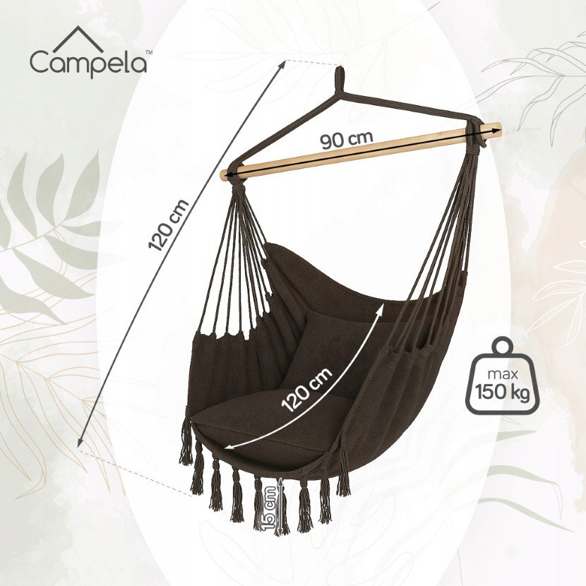 ✨ Brazylijski hamak – fotel wiszący do salonu i ogrodu marki Campela ⭐ Brazylijski hamak marki Campela Elegancki i funkcjonalny fotel wiszący, idealny do użytku zarówno wewnątrz, jak i na ...