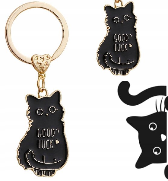 Breloczek z kotem i napisem "Good Luck" to wyraz pozytywnej energii i życzenia pomyślności.