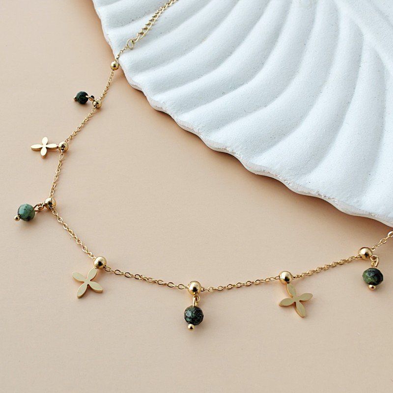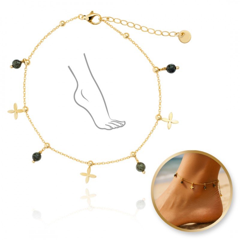 Bransoletka Na Stopę Stal Chirurgiczna Pozłacana 14K Złotem Kamienie BST1561 ✅⭐ Bransoletka Na Stopę Ze Stali Chirurgicznej ...
