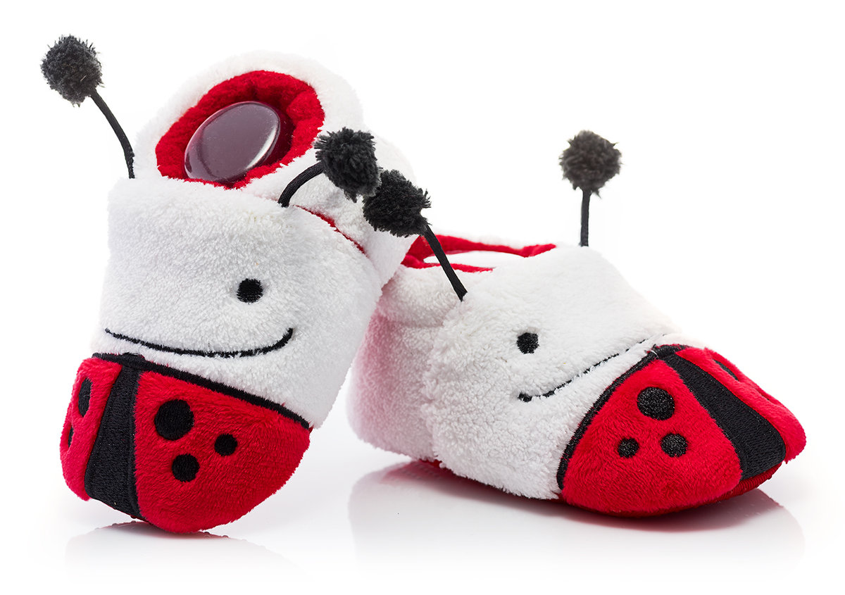 Ciepłe, domowe buciki niemowlęce wykonane w całości z dzianiny przypominającej futerko. Buciki przypominają zwierzaki dzięki dodatkowym haftom i doszywanym elementom. Podeszwa nakrapiana systemem antypoślizgowym. Idealne na wózek i do łóżeczka.