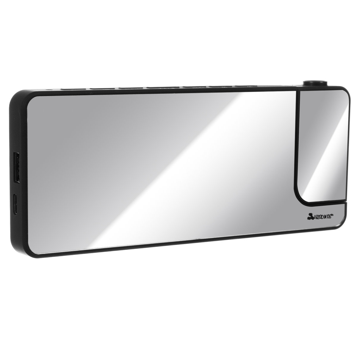 - 4w1 – zegar, budzik, lustro oraz projektor! Wszystko w jednym, kompaktowym urządzeniu. Budzik wyposażony został w lustrzany front, na którym wyświetlane są informacje takie jak godzina. Kompaktowe wymiary oraz niewielka waga pozwolą na zabranie go w podróż. Doskonale sprawdzi się również podczas spania w namiocie, gdzie lustrzany front umożliwia wykonanie szybkiego makijażu oraz fryzury.