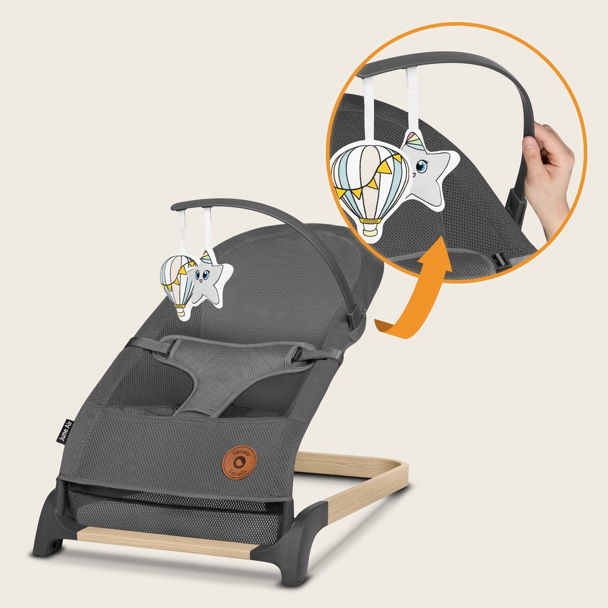 Właśnie zrecenzowałem LEŻACZEK BUJACZEK SKŁADANY DLA NIEMOWLĄT LIONELO JUNE z zabawkami i pasami