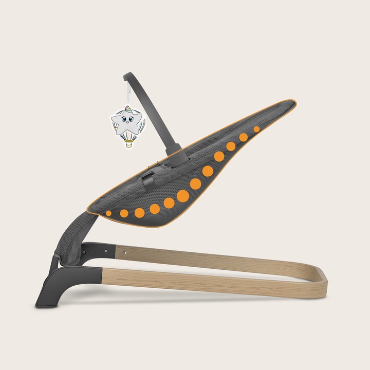 Każdy rodzic potrzebuje chwili przerwy, żeby złapać oddech i zregenerować siły na resztę dnia. Z myślą o tym stworzyliśmy bujaczek, który naśladuje naturalny, balansujący ruch bujania. Porusza się dzięki naturalnym ruchom dziecka, co rozwija świadomość własnego ciała i umiejętność utrzymywania równowagi