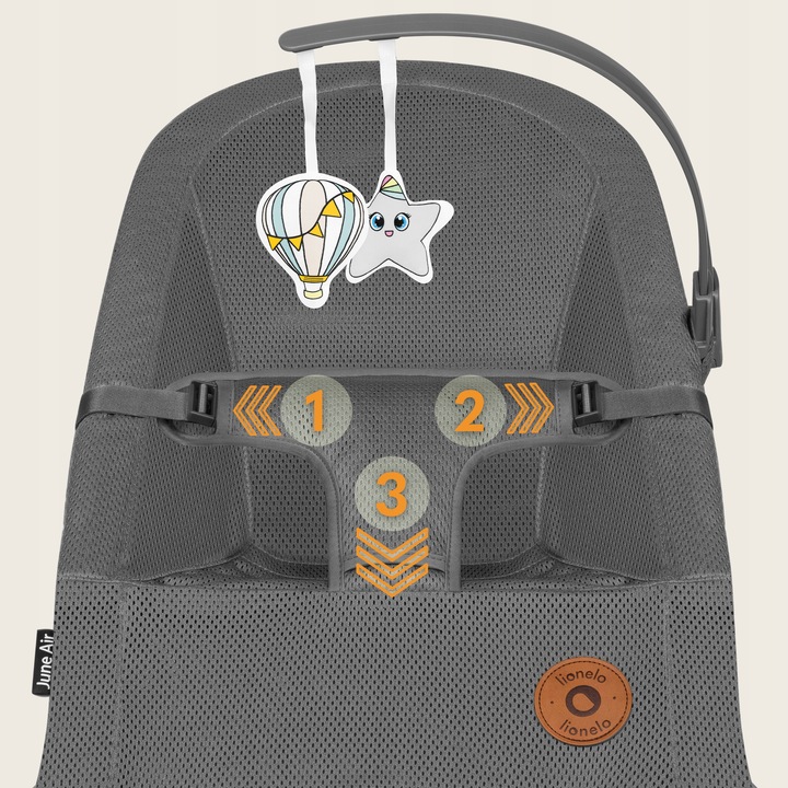 Nie musisz martwić się o bezpieczeństwo malucha. Bujaczek Lionelo June został wyposażony nie tylko w stabilną konstrukcję, ale także w 3-punktowe pasy i miękki ochraniacz
