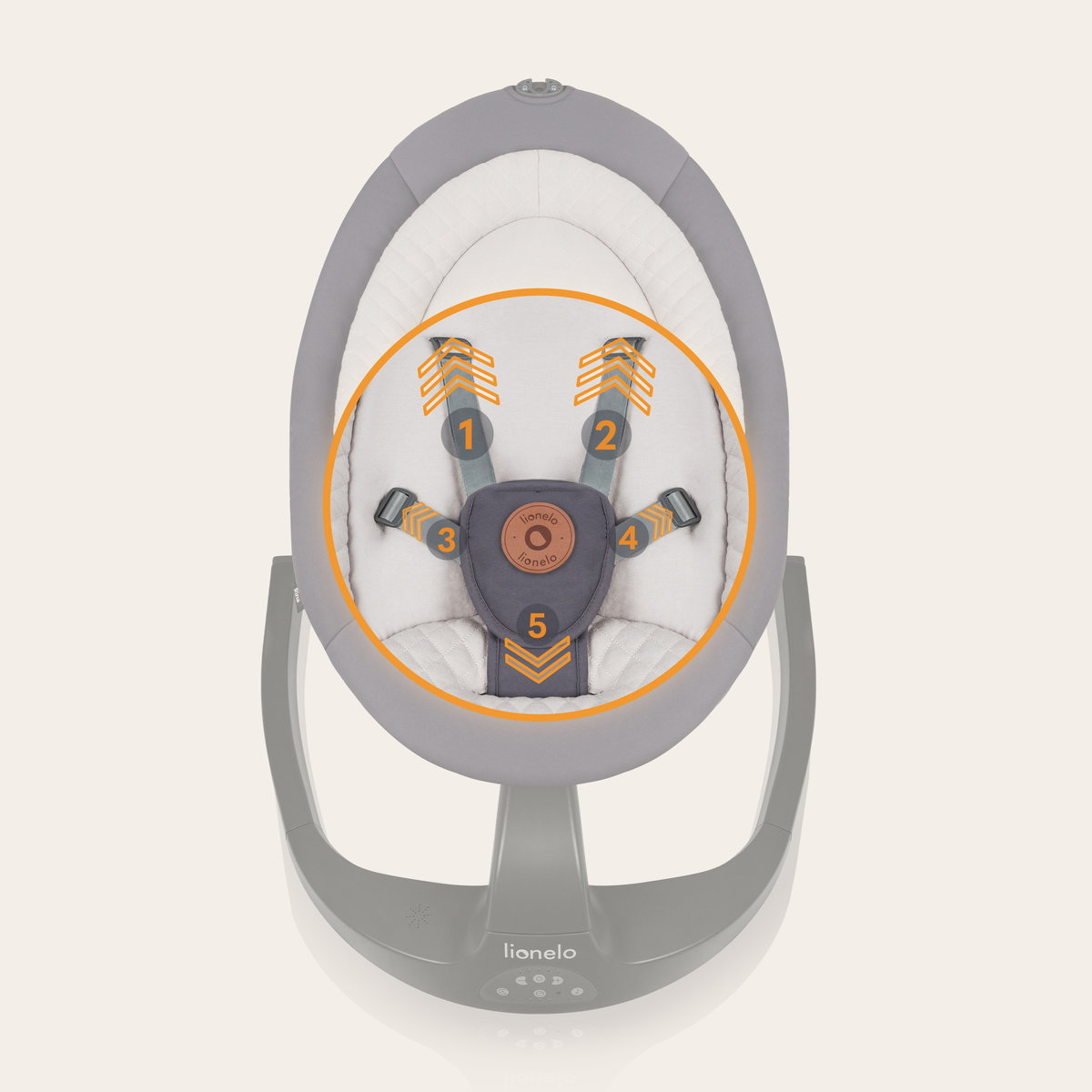 Bujak Lionelo Rina wyposażyliśmy w specjalnie zaprojektowaną miękką i przytulną wkładkę, która zapewnia maksymalny komfort dziecku, a 5-punktowe pasy z ochraniaczem zapewnią bezpieczeństwo.