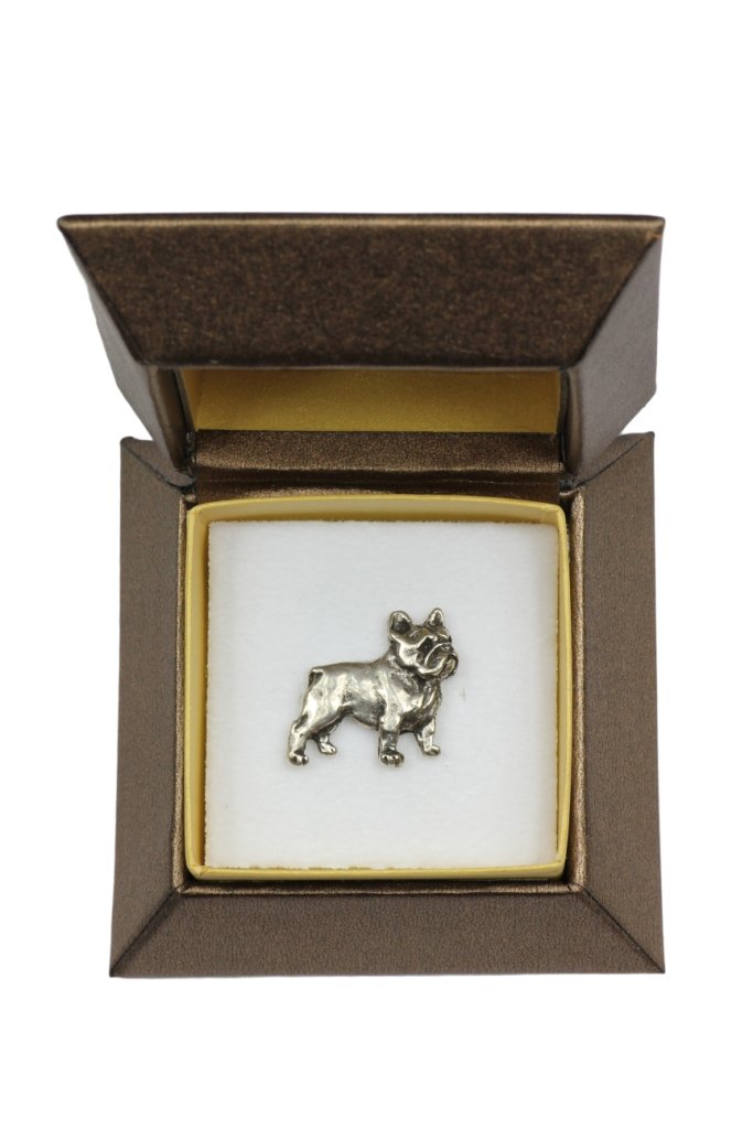Buldog francuski I - broszka z psem w pudełku prezentowym, elegancki pin, wpinka do klapy marynarki marki Art-Dog