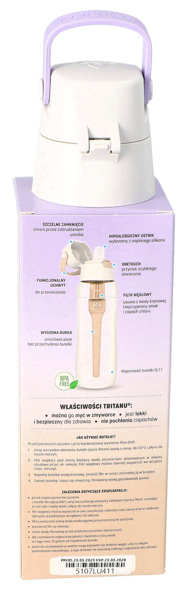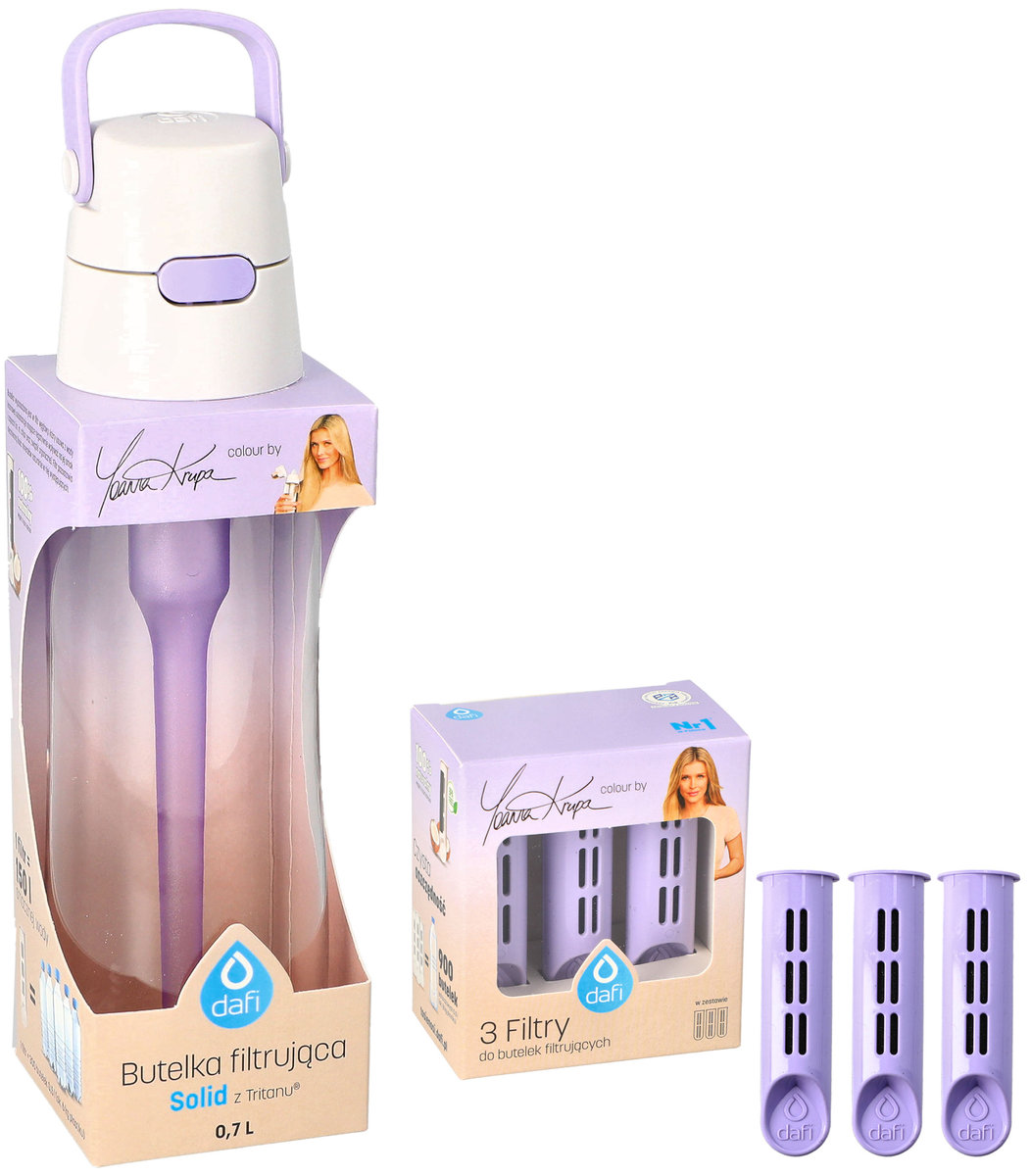 Butelka filtrująca Solid Lawendowa 0,7L + 4x filtr wkład węglowy Producent: DafiKraj pochodzenia: PolskaKolor: LawendowyPojemność: