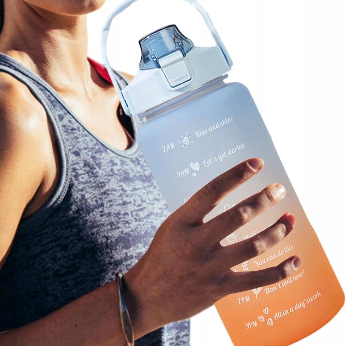 ⭐ BUTELKA ZE SŁOMKĄ BIDON NA WODĘ DUŻY 2L z MIARKĄ MOTYWACYJNĄ NIEBIESKO-POMARAŃCZOWY⭐