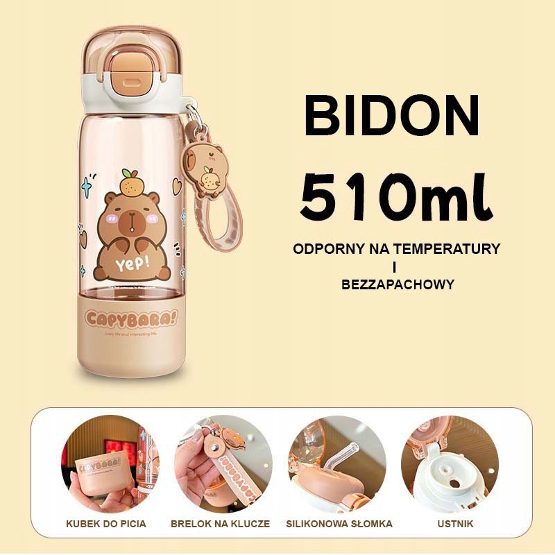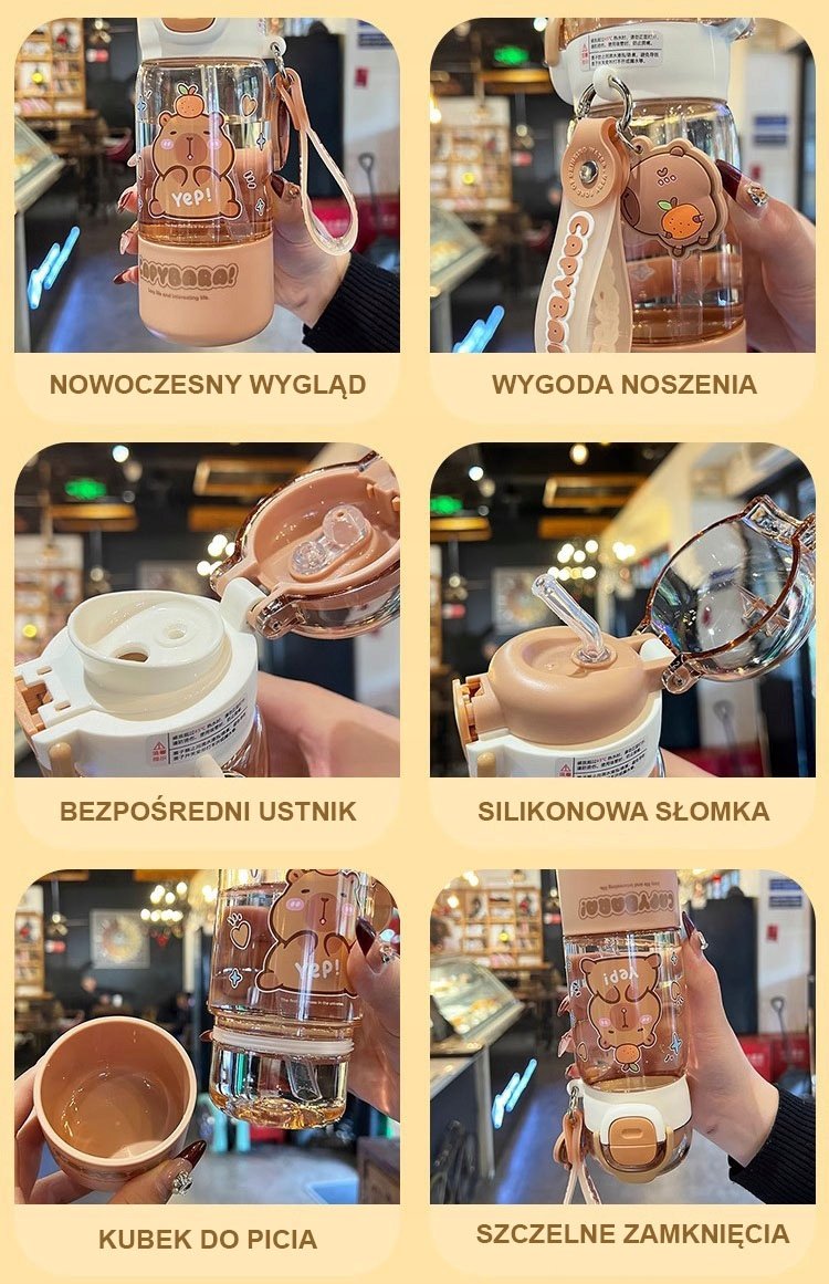 Właśnie zrecenzowałem BUTELKA na wodę KAPIBARA z blokadą MIĘKKA SŁOMKA ustnik KUBEK 510ml BIDON