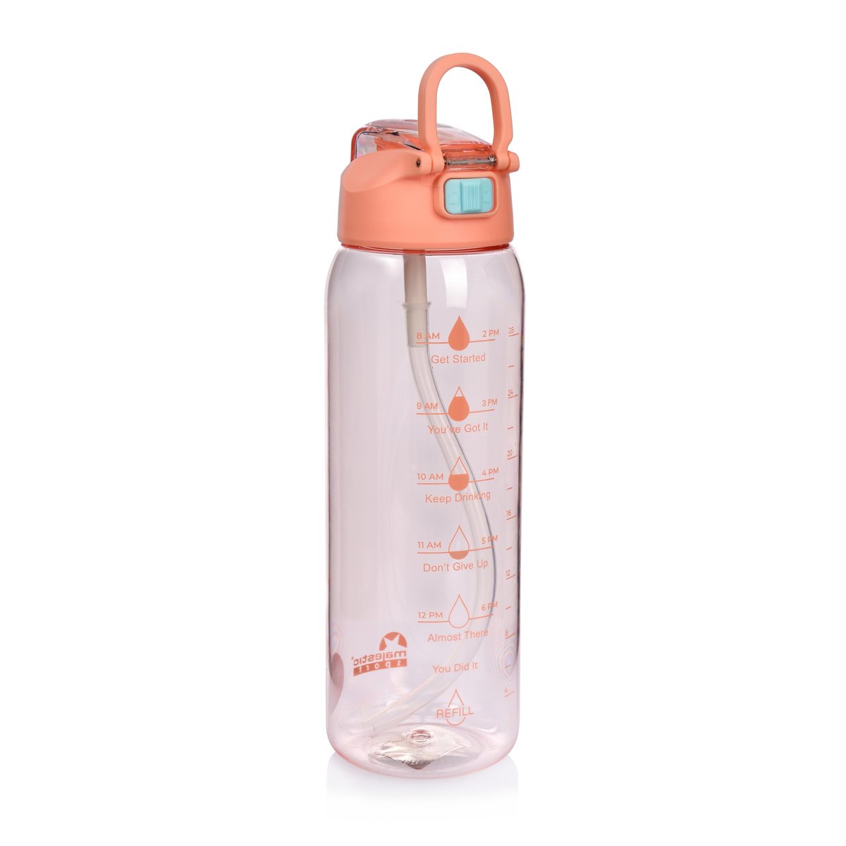 ❗ Litrowy, przezroczysty korpus z podziałką motywacyjną sprawia, że nie zapomnisz o wypiciu wystarczającej ilości płynów o danej godzinie. Wyjmowany ustnik w formie słomki umożliwia picie w pozycji pionowej oraz zachowanie prawidłowej higieny nawet najmniejszych elementów. 1000 ml zawartości to gwarancja odpowiedniego zapasu wody na kilkugodzinną wyprawę w terenie, czy forsowny trening na siłowni.
