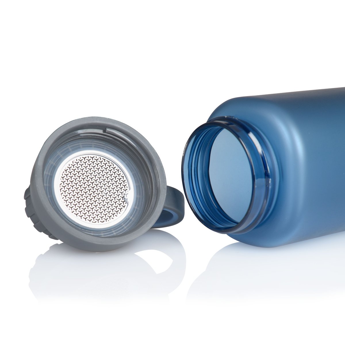 ❗ Butelka na wodę James Mat to aż 1000 ml pojemności. Podziałka litrowa, umieszczona na korpusie, pozwala w łatwy sposób kontrolować ilość spożywanych płynów. Szeroki ustnik zapewnia swobodny przepływ wody, a metalowe sitko, poprzez dodanie ulubionych warzyw i owoców, urozmaici nieco smak Twojego napoju.