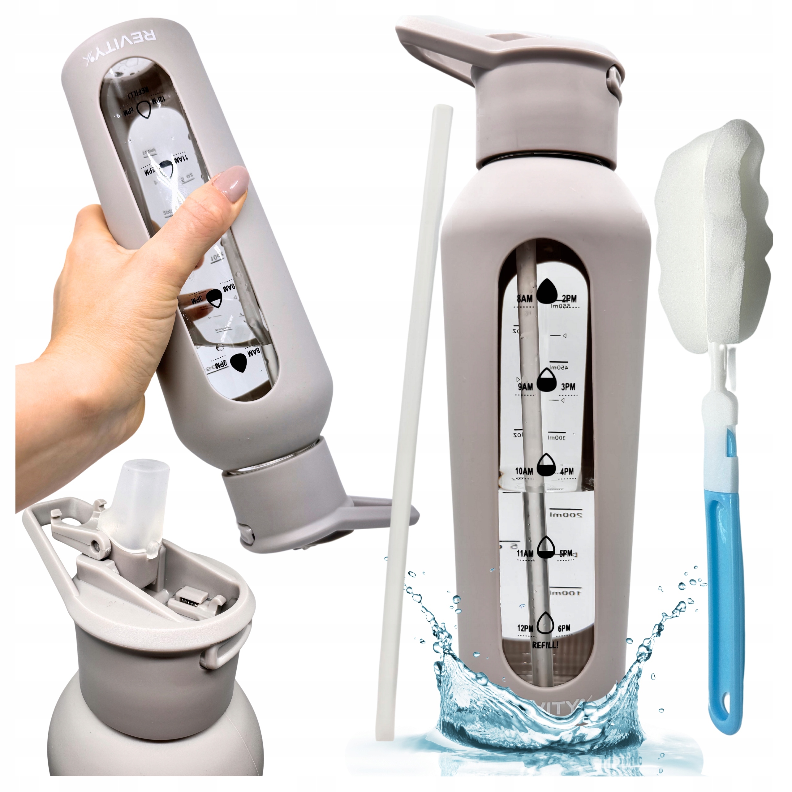 SZKLANA BUTELKA NA WODĘ MOTYWACYJNA WIELORAZOWA TRWAŁA SZCZELNA ZE SŁOMKĄ Kolor szary Aktualnie dostępne kolory to: zielony szary granatowy beżowy Aktualnie gratis do każdej ...