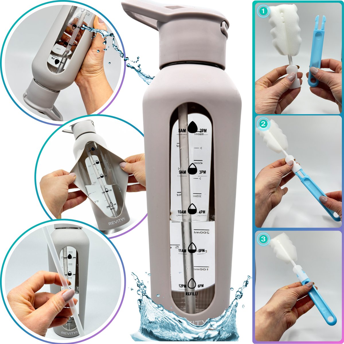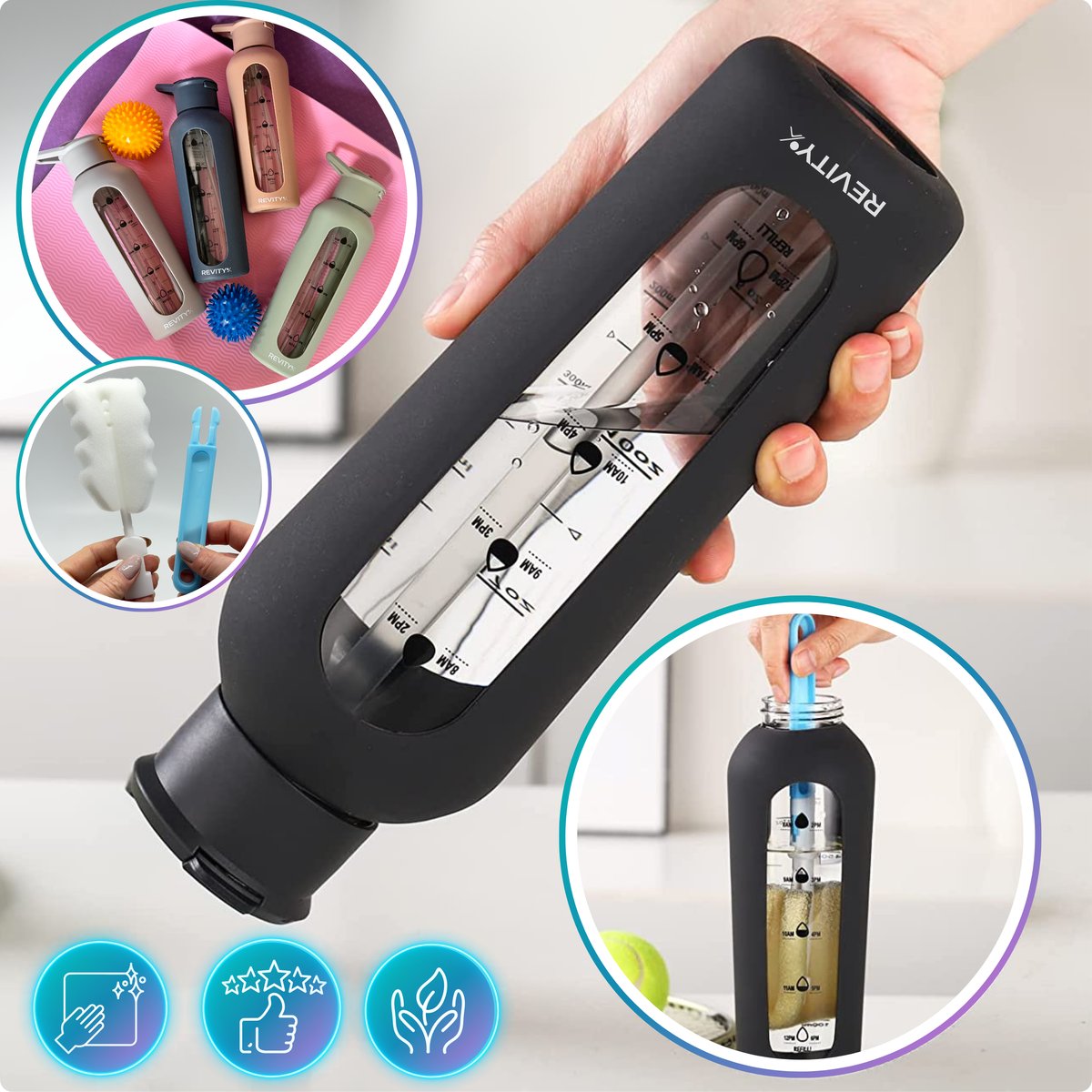 ✅ Wysokiej jakości szklana butelka na wodę w silikonowym rękawie
