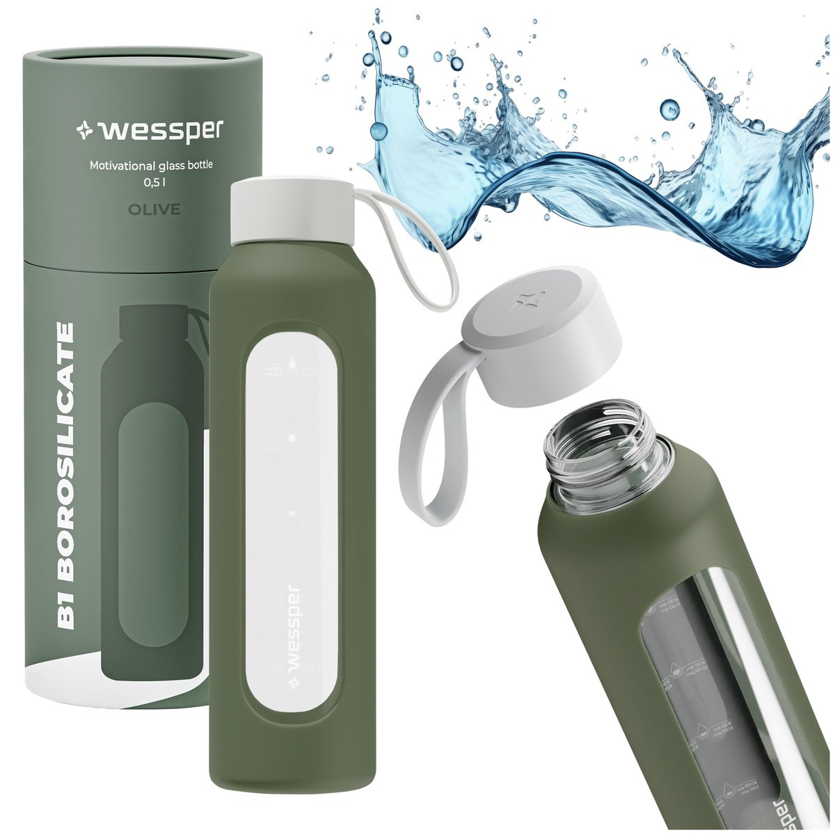 Wessper B1 Borosilicate to wyróżniająca się eleganckim designem butelka motywacyjna, wykonana ze szkła borokrzemowego.
