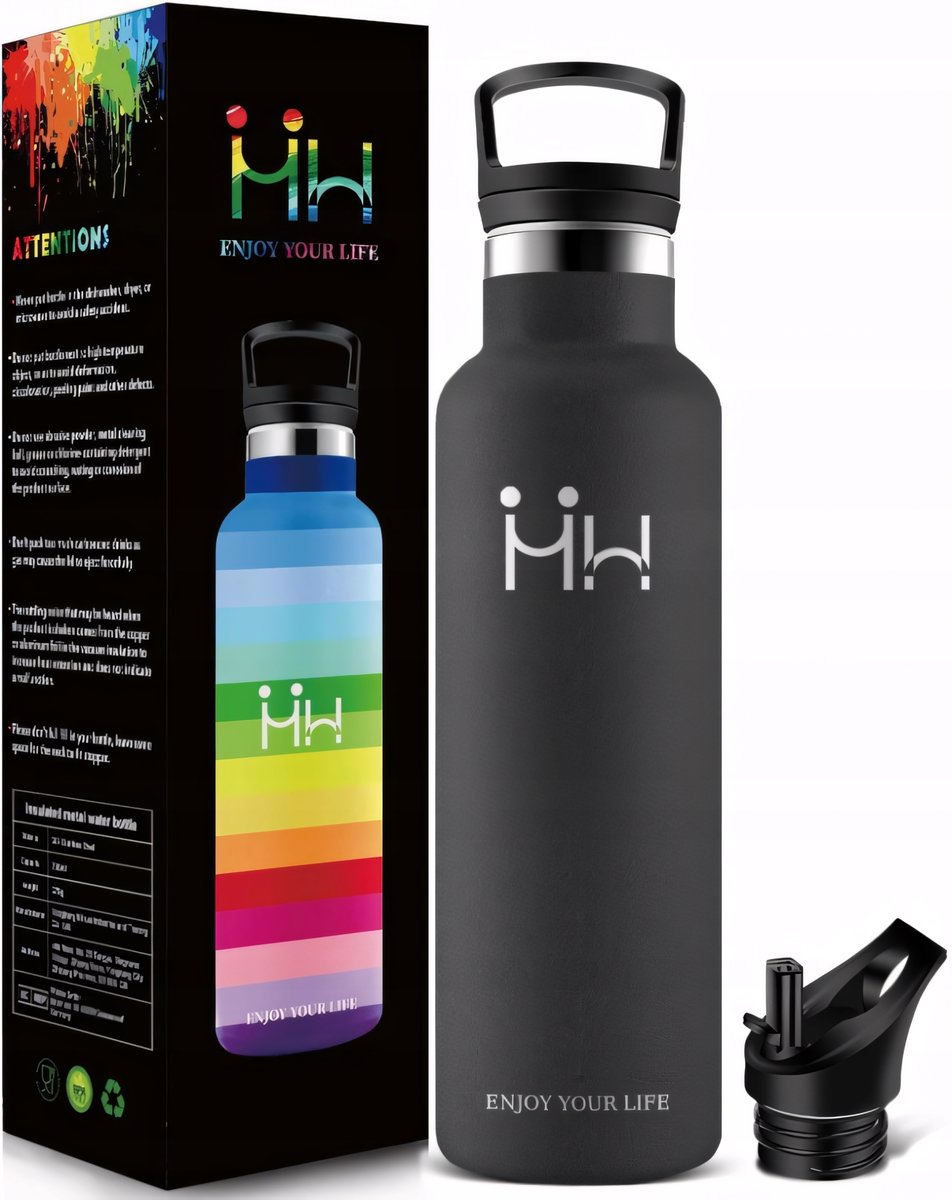 ✅ Dwie wymienne nakrętki – sportowa ze słomką oraz klasyczna z uchwytem